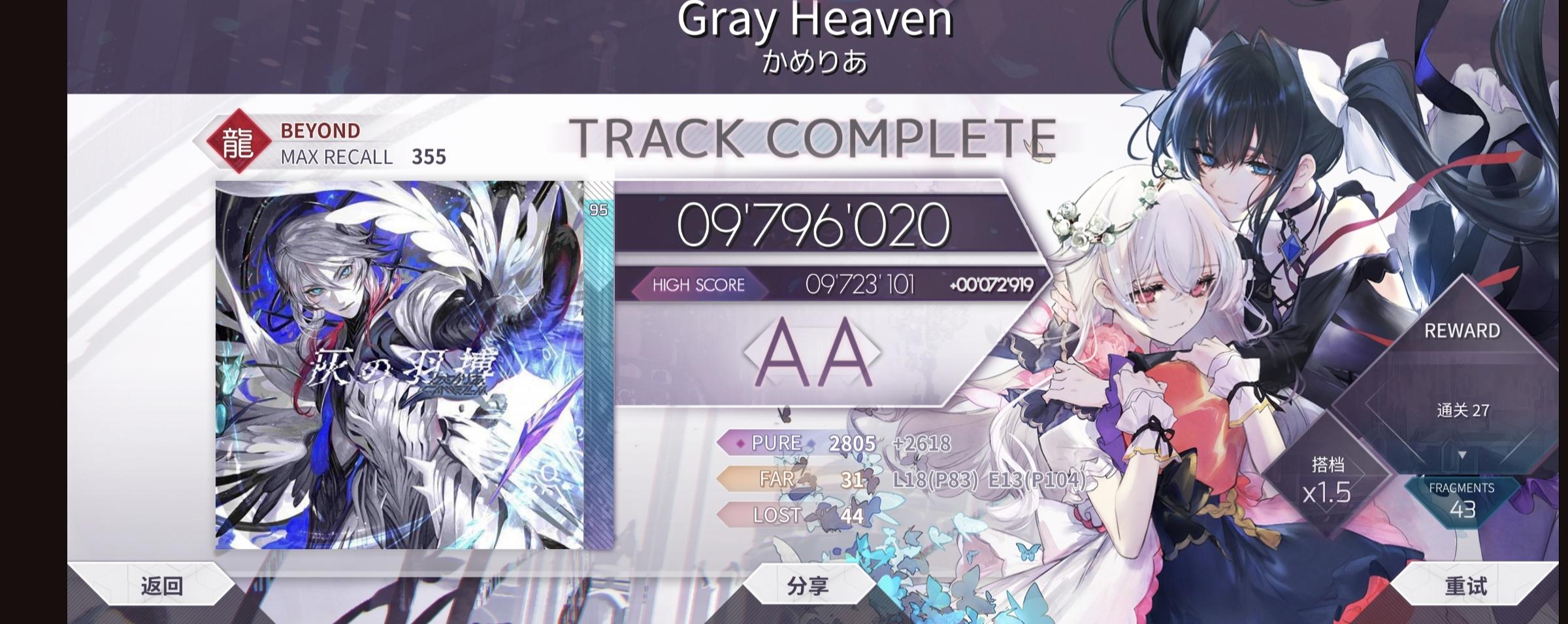 比较认真的一张双人,游戏玩的太菜了 就不发成绩了 ,现在也只能打7级ex
