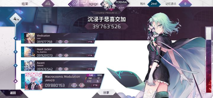 2024/11/30 正式入坑arcaea2025/1/26 ptt11.002025/4/5 ptt11.50之后就进入了一段漫长的瓶颈期…直到今年2月底,发现瓶颈期过了(大概),接着又开始尝试推分终于在今天达成12.00!(虽说b30里几乎全是水谱)其实也没什么特别的感想,只希望以后的推分会顺利点🙏🏻(笑点解析:把宿命光技能锁了是因为之前一次开技能打到一半卡车丢失了)