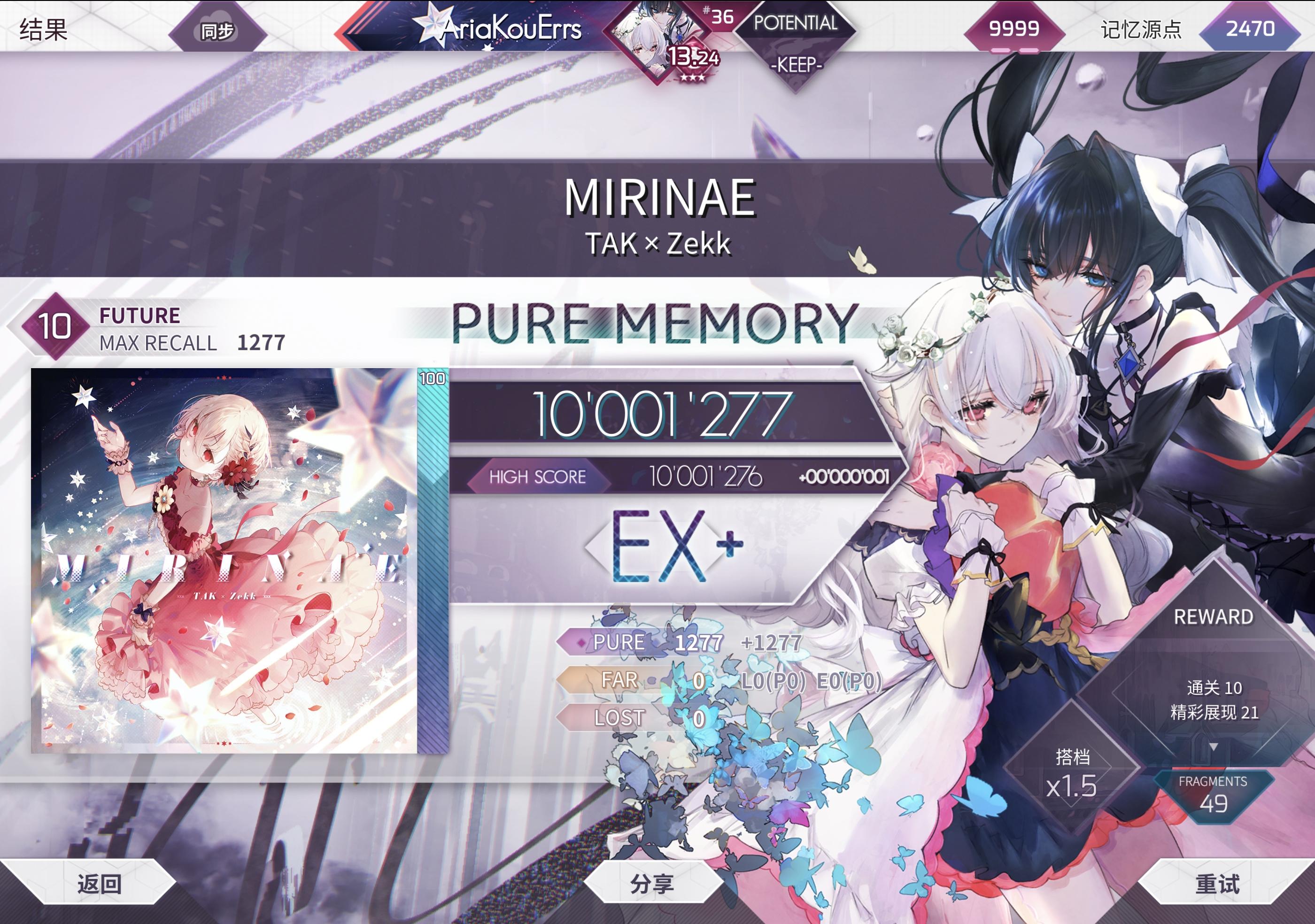 10+首P(是的我先p了lamia才p了第一个10+),衔尾蛇对我来说应该是最好p的10+了,节奏比绿魔王还简单,蛇段0难点,唯一容易翻车的地方是尾杀的超长高密度纵连,因为是在最后抽奖所以一直没认真推过,但今天上午我只是随手开了一把居然很神奇的过了。下一个准备推蛋挞林,2pc直接性了,还是爆在300多那里,后面和喝水一样已经乱杀了。不是怎么砖魔王也2pc性了,我不打了。