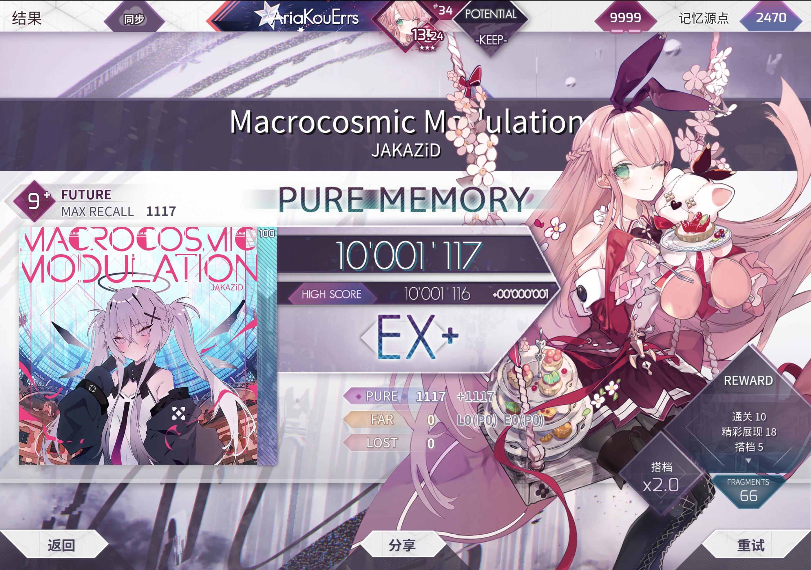 10+首P(是的我先p了lamia才p了第一个10+),衔尾蛇对我来说应该是最好p的10+了,节奏比绿魔王还简单,蛇段0难点,唯一容易翻车的地方是尾杀的超长高密度纵连,因为是在最后抽奖所以一直没认真推过,但今天上午我只是随手开了一把居然很神奇的过了。下一个准备推蛋挞林,2pc直接性了,还是爆在300多那里,后面和喝水一样已经乱杀了。不是怎么砖魔王也2pc性了,我不打了。