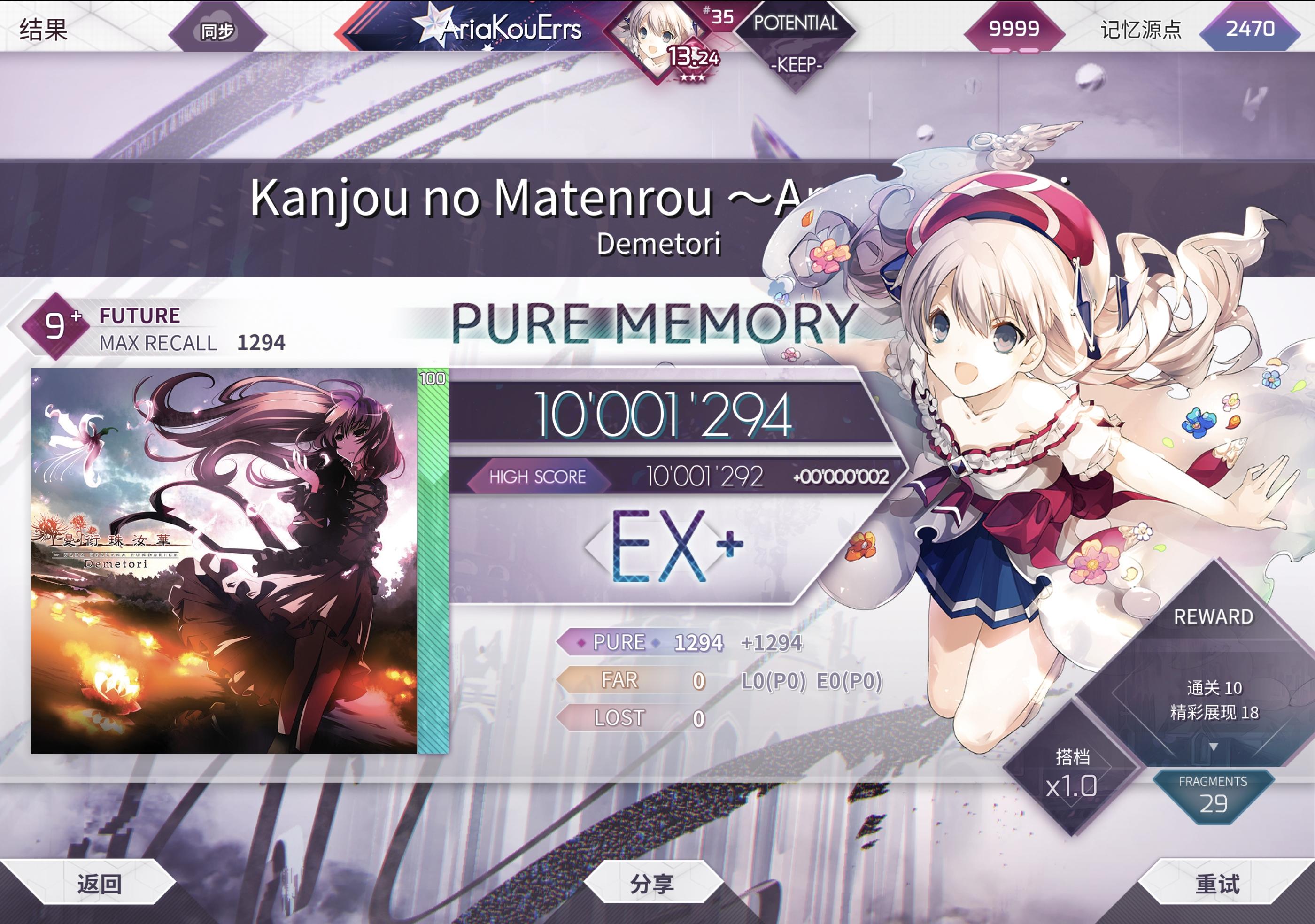 至少在明年做腿的手术之前到12.0了.......我大概是这个游戏年龄里最老的最像个似人的那一类玩家,到现在已经过23岁了,有时候打9和9+都能气喘吁吁。但不知道为什么,或许和最近打了一个别的游戏把心态磨平了也有关,这次打完没有喘气,没有惊讶,只想继续再推高一点,只想珍惜一下这短暂的世界终于安静了的一瞬间。其他的话还是以后在评论里慢慢补充吧,就当是存在tap的备忘录了。If this fi