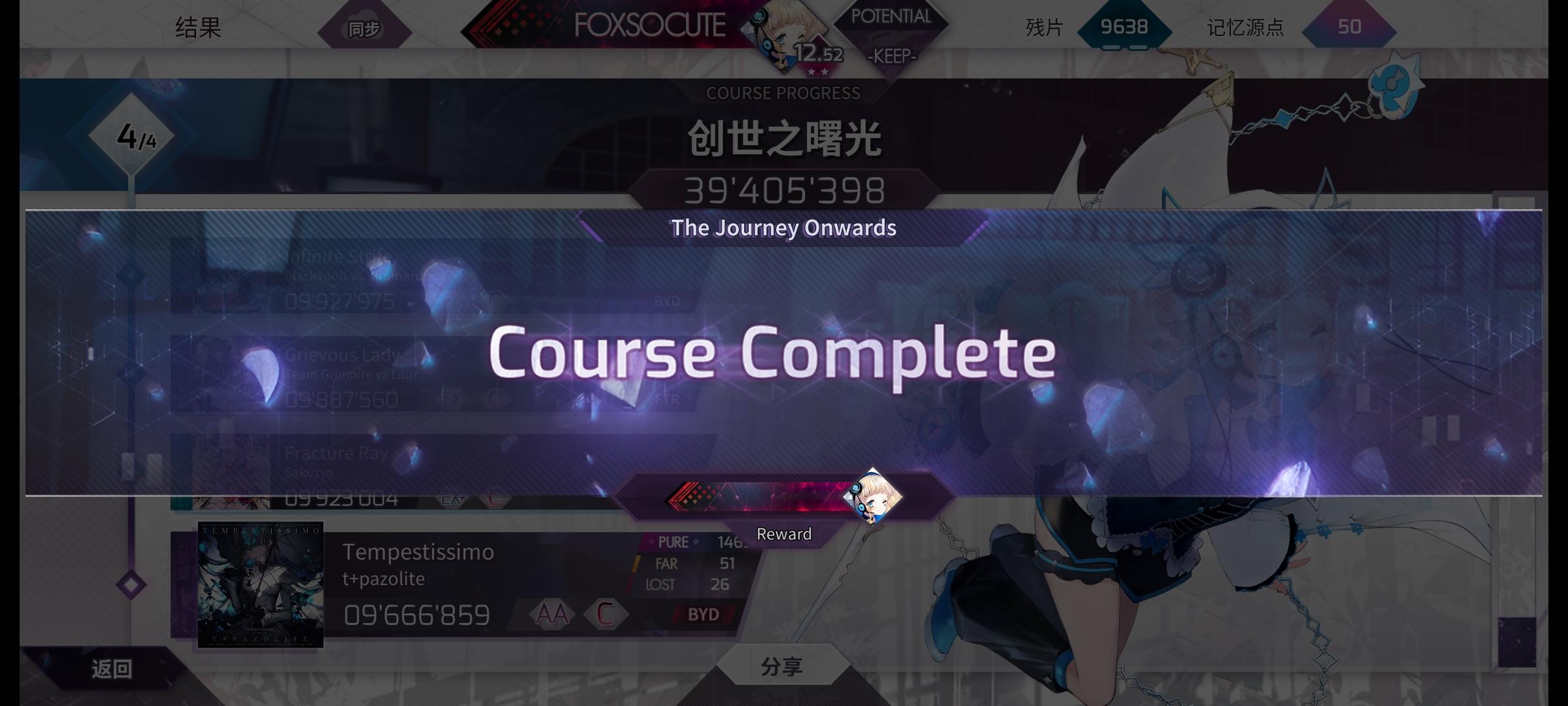 换侧之后打魔王真的好很多,开头成功率提高,甚至有一把前600cbPM(p3)总之一下子吃爽了,顺便拿下第五个单曲双星😋😋😋😋从12.1到12.2算是一个很大的突破了,因为买的包太少所以接下来很难提升,寒假之前到不了12.3,但是买了包另说🥶回头会再发一个b30,发现我大歌的成绩都涨了好多,能吃上的全吃上了在此纪念,希望以后能飞双星(bushi)#arcaea #arcaea准度爆炸 #音游
