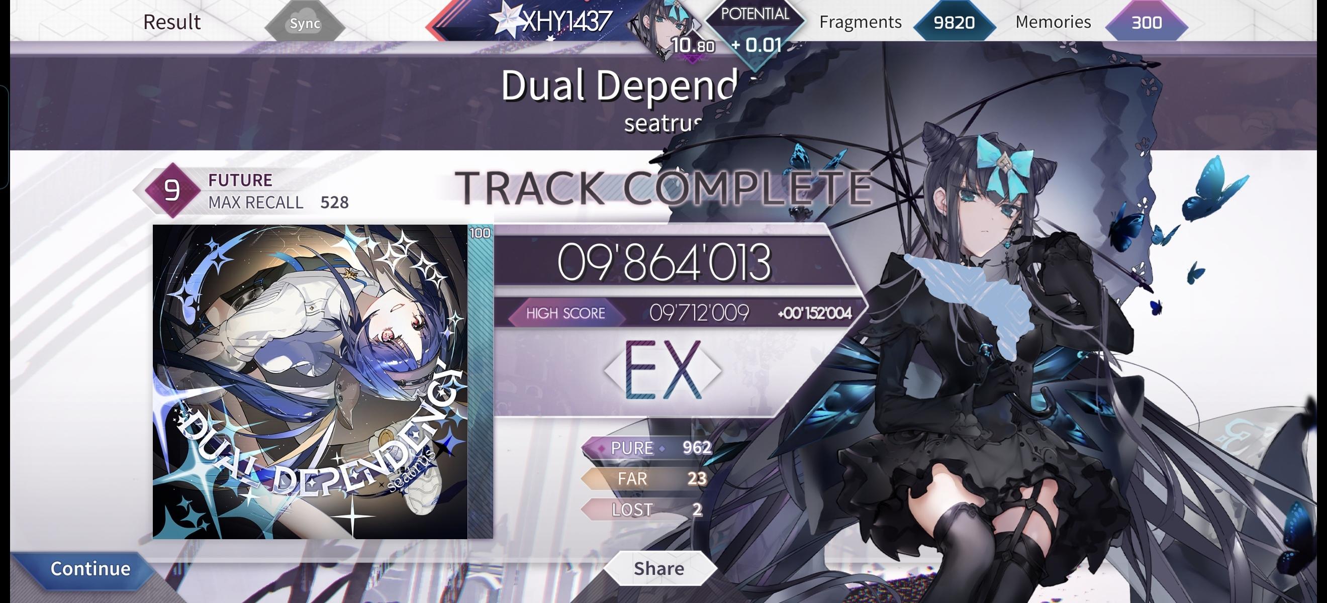 比较认真的一张双人,游戏玩的太菜了 就不发成绩了 ,现在也只能打7级ex