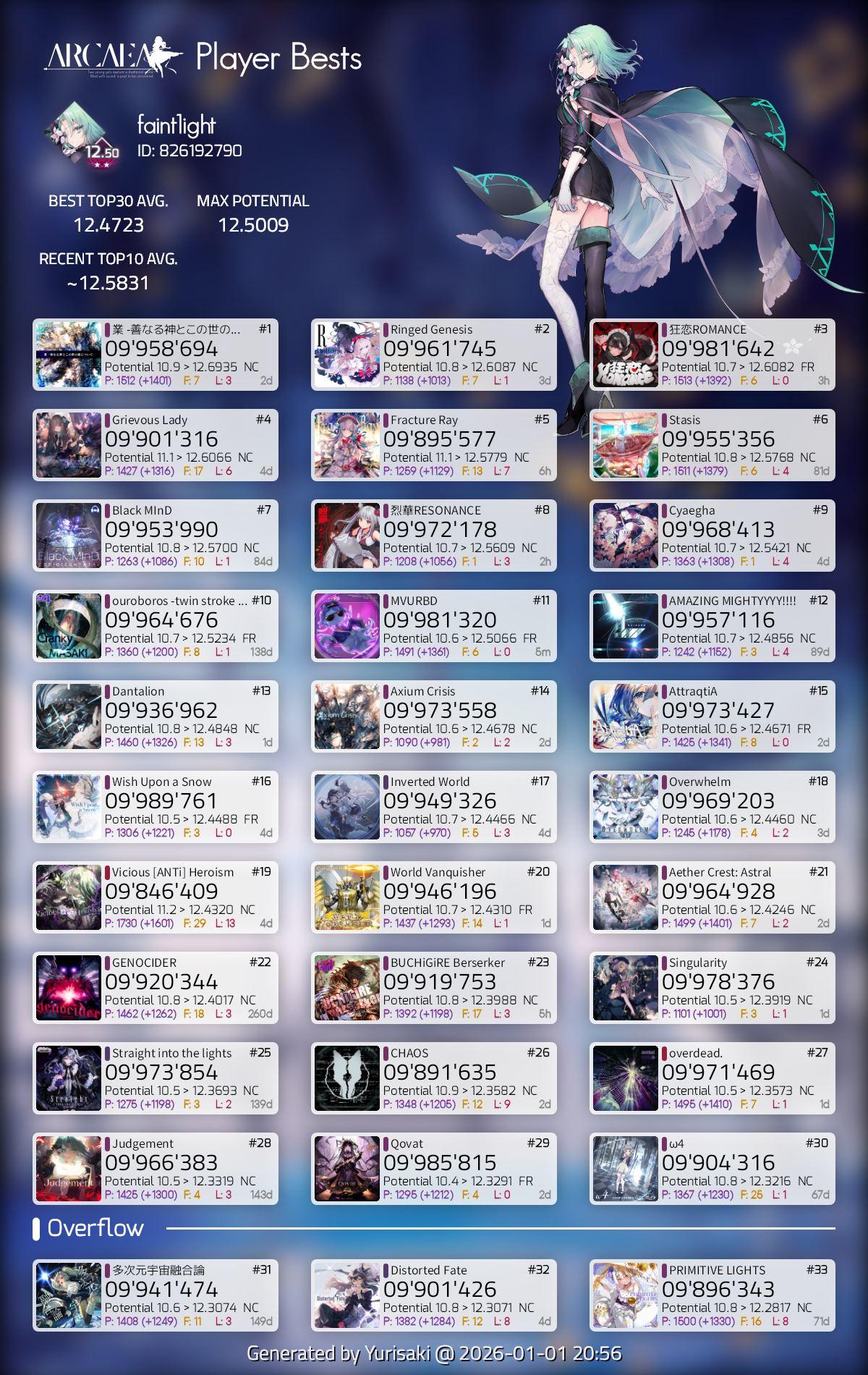 随着定数更新被一脚踹回了12.1 不知不觉也快一年了。不知道什么时候起觉得这个游戏好陌生...上次上线好像还是因为vita更新了新的立绘 但是新剧情究竟是什么样的我都不知道(有笨蛋打完手一歪摁到退出没截到+0.01的图w嘛 新年第一天推分 也算是一个好的寓意了x祝看到帖子的你新年快乐 底力++ rp++(逃)