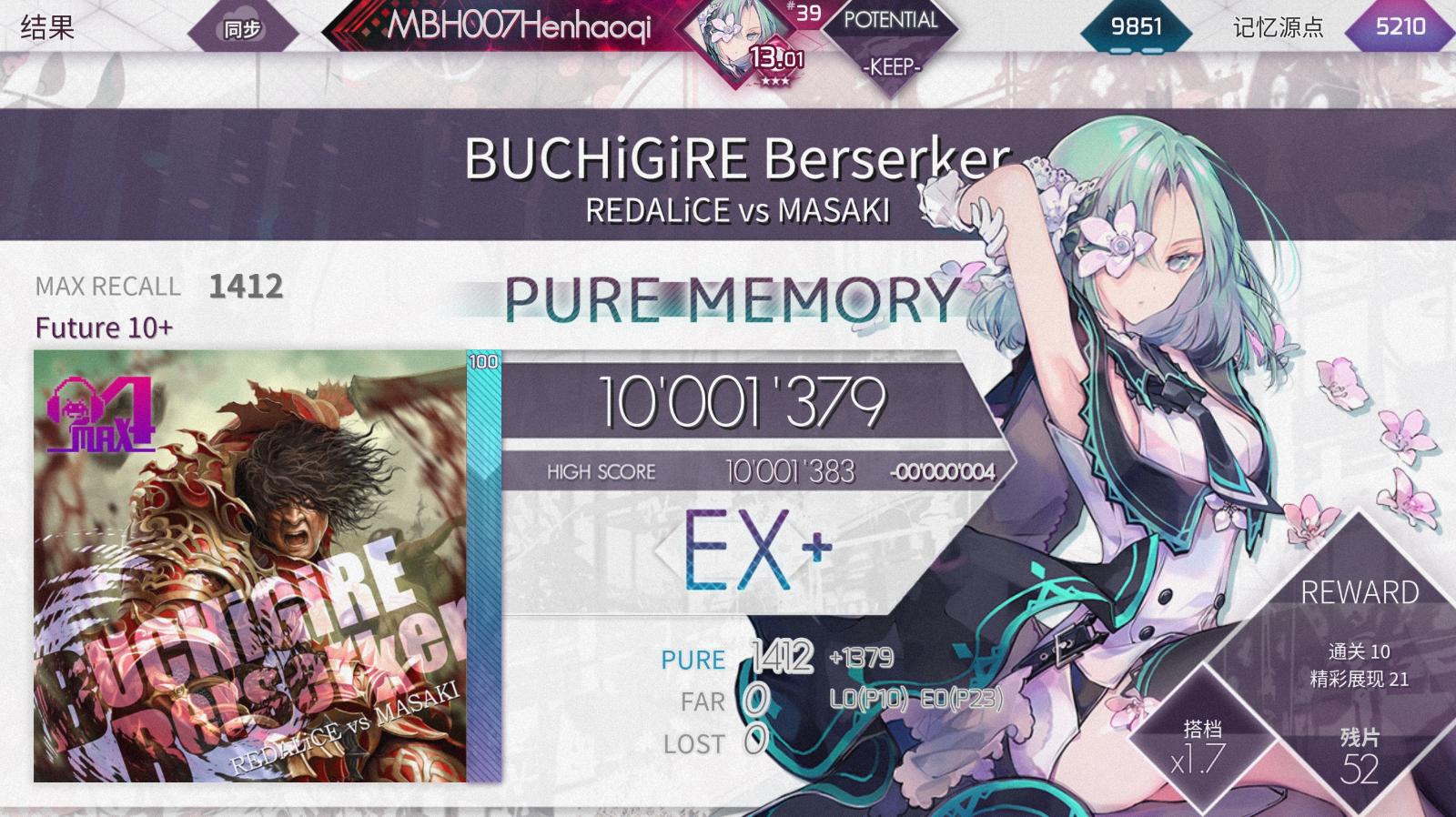这也是我在arcaea的第二个Pure Memory。第一个是inkar-usi。