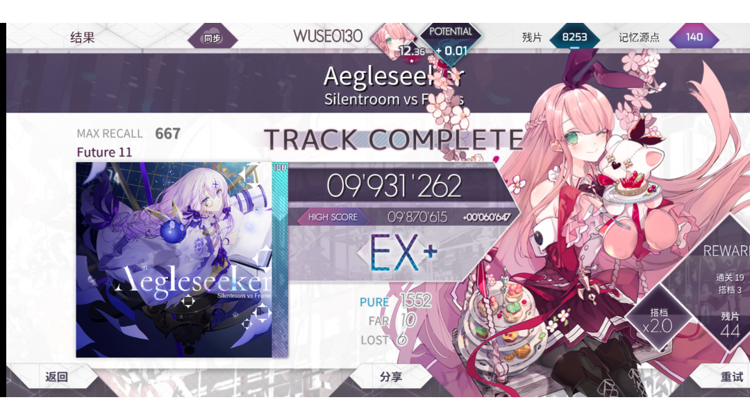 个人首个11级EX+纪念屏元!(bushi) 要不是华为刷新率太低了的话光追还能高,不过先这样吧~开心~ 随缘推分haha