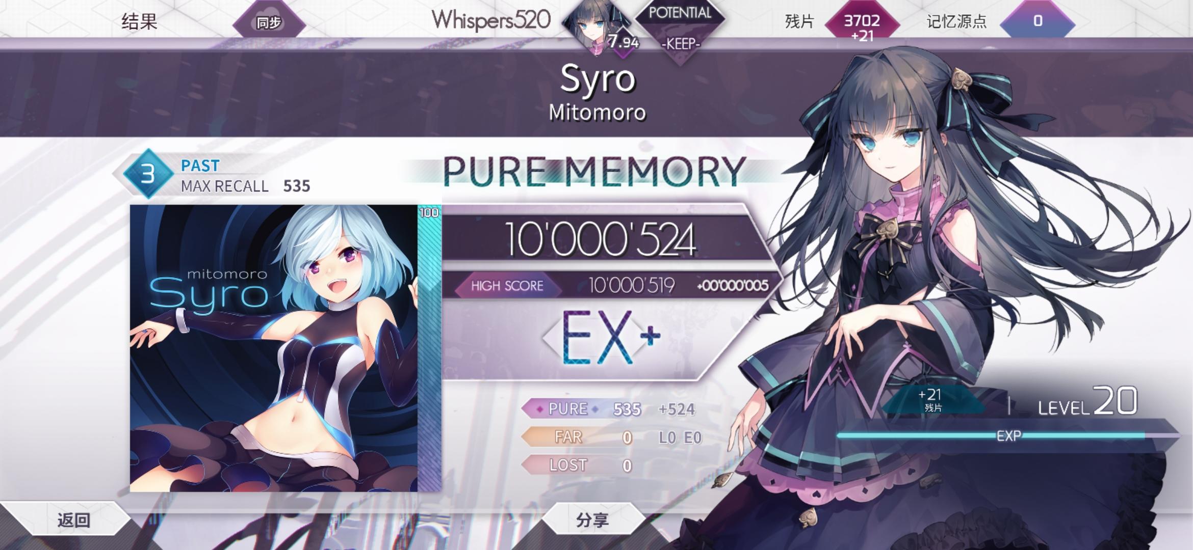 通过这几天的不断练习、爬梯,明显感觉到Arc比Phi的判定严很多,刚开始十分不适应这种迷之判定,导致2级曲都能爆出10个far来(爆far户这也使我刚开始AP一首PAST都成为了奢望不过既然有着把游戏玩好的决心,我便坚持了下去 虽然ptt涨得很慢,但从中收获了技巧,经验,乐趣才是最重要的经过近一周的反复练习,我也收获了几个意想不到的成果(P6的第一首理论值,P2的4级初见收等,这些都是之前没