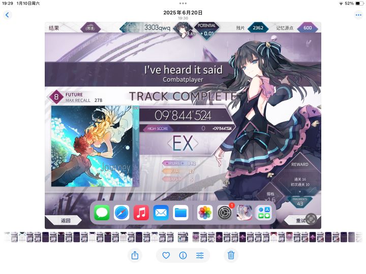 前两天推不动,就只能打主线,但收效甚微今天突然手感大爆发,打了3pc之后直接推到997遂尝试了两个9,总共历时8pc拿下10.4第二个单曲红框诞生!#arcaea #arcaea准度 #arcaea萌新