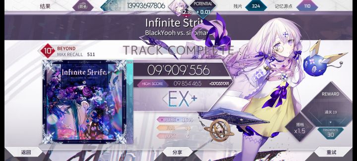 通过这几天的不断练习、爬梯,明显感觉到Arc比Phi的判定严很多,刚开始十分不适应这种迷之判定,导致2级曲都能爆出10个far来(爆far户这也使我刚开始AP一首PAST都成为了奢望不过既然有着把游戏玩好的决心,我便坚持了下去 虽然ptt涨得很慢,但从中收获了技巧,经验,乐趣才是最重要的经过近一周的反复练习,我也收获了几个意想不到的成果(P6的第一首理论值,P2的4级初见收等,这些都是之前没
