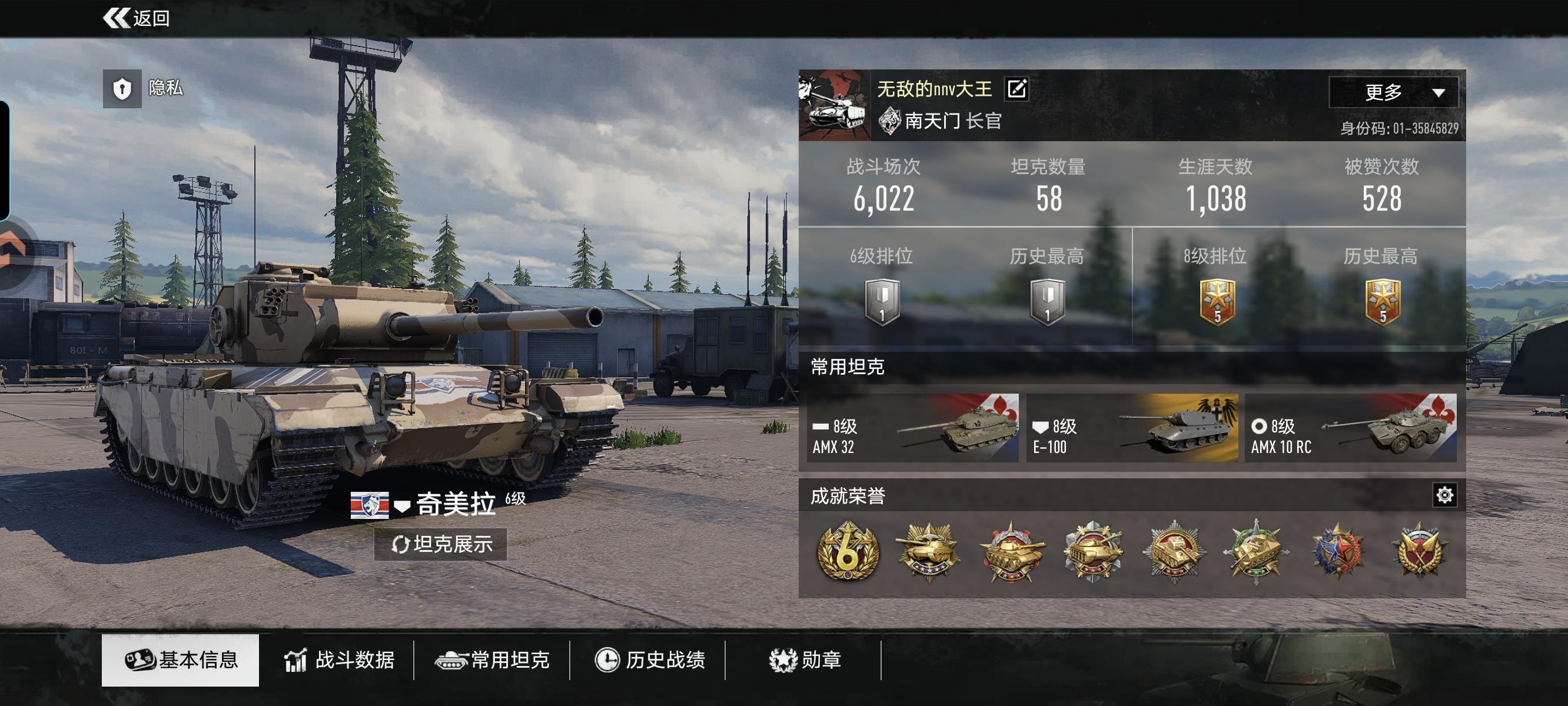 附上两张图,一是说59这车可玩性不是很高,肝度较大,收藏价值大于实战,玩法比较趋向于豹一,无法左右胜率。第二个是界面给没有玩过的看一下,还是比较简洁的。