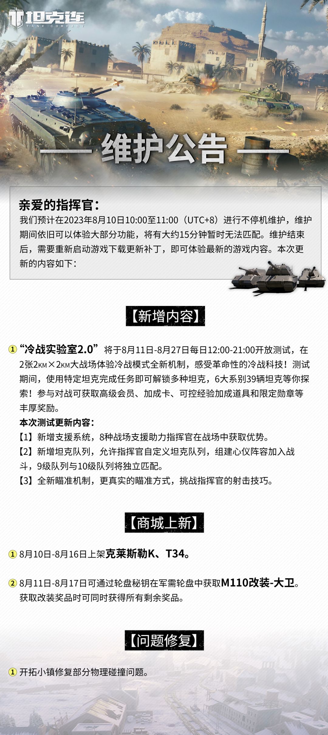 更新公告|冷战实验室2.0即将开放!#坦克连