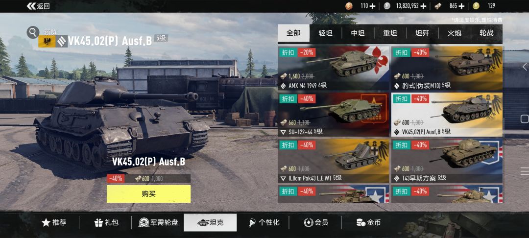 入手方式:开活动送的箱子(白嫖) F系重坦,5连发弹夹祖传炮。 这车一言难尽,就像打排位几乎看不到50一样。 优点:火力强劲,俯角良好。 缺点:车身高,装甲一般,机动差,装填真空期长。 这车在五级房能造成局部碾压,首上能稳定跳200穿以下,遮住裤裆可以卖上身和头。 但是。 一般都进6-7级房,人均200穿。 五连发210穿弹夹震慑力强悍。 但是。 大装填30多秒,注定这车不能抗线,最好有个德重队友