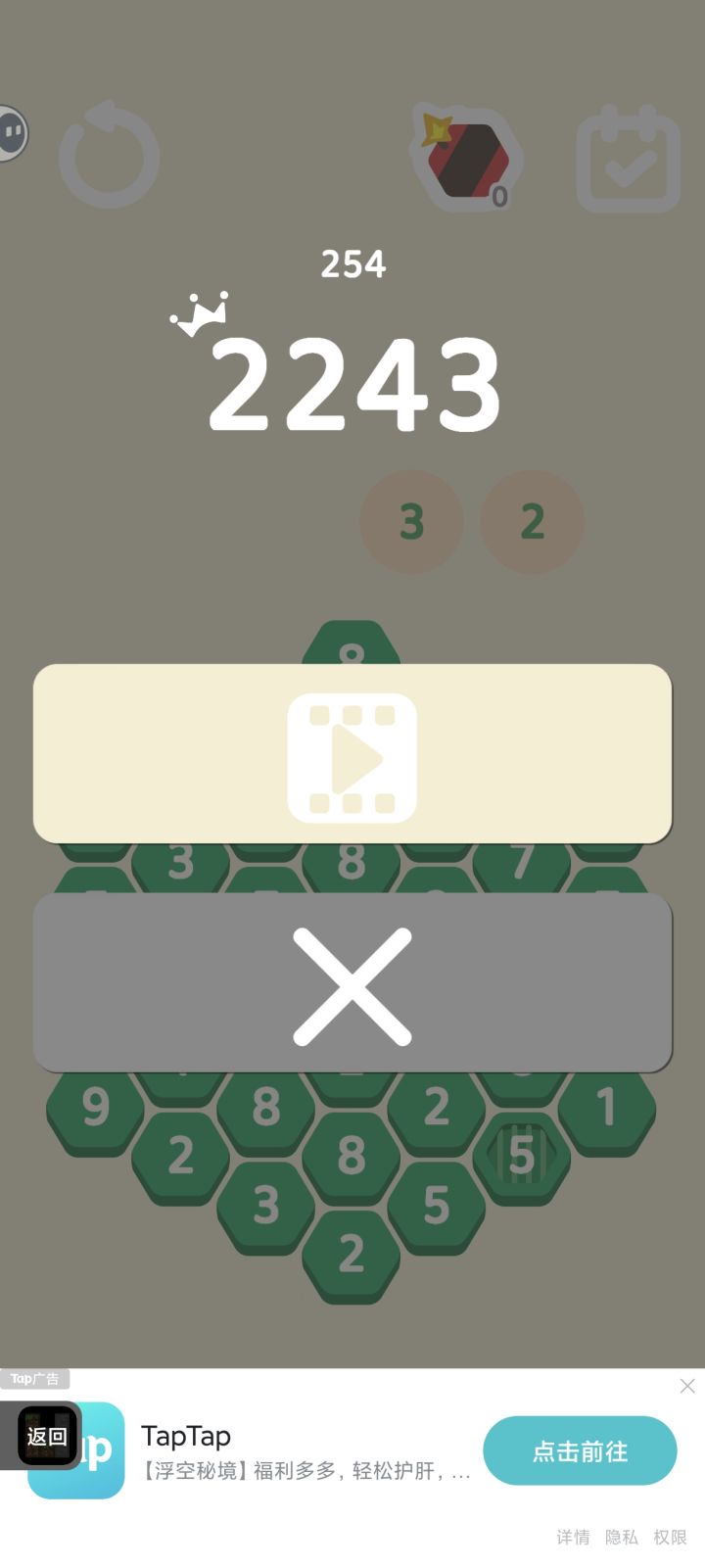 小玩了一会儿,有点费脑子hh,新手教程卡了点,其实可以加点字的,实战看明白了但是新手教程迷迷的,目前没有强制性广告,也没有限时