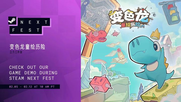 各位小伙伴们,在这个年味愈发浓厚的日子里,最适合宅家里开开心心打游戏啦!今天,我们为大家带来了像素风叙事解谜创意之作《With My Past往事伴我》和手绘涂鸦风平台跳跃游戏《变色龙童绘历险》的线上试玩版。大家登陆以下平台均可体验试玩哦! Steam传送门: WeGame传送门: 此外,以上两款游戏均定档今年第二季度上线,在2月6日2:00~2月16日2:00.大家登陆Stea#变色龙童绘历险