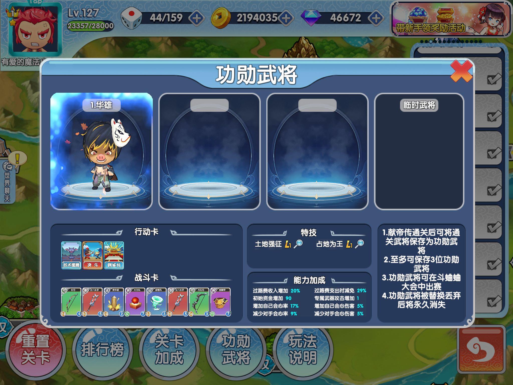 从萌新走来,看见一茬又一茬萌新长大,变成大佬,自己仍然苟且偷生,但是今天,我华雄终于通关了,非常感动,他的争气让我无比骄傲自豪!从20级华雄打的前几十关,到马超那关拉满35,最后2关有了衣服,我的献帝也迎来了首通!感谢热爱大富翁的自己~也非常感谢家人朋友甚至仇人的照顾!没有你们我不能坚持到今天! 仰视富豪大佬们一步一步往前走,我不强,但仍然愿意继续奋斗!来啊厮杀吧!(好友位有限,许多眼熟的大佬