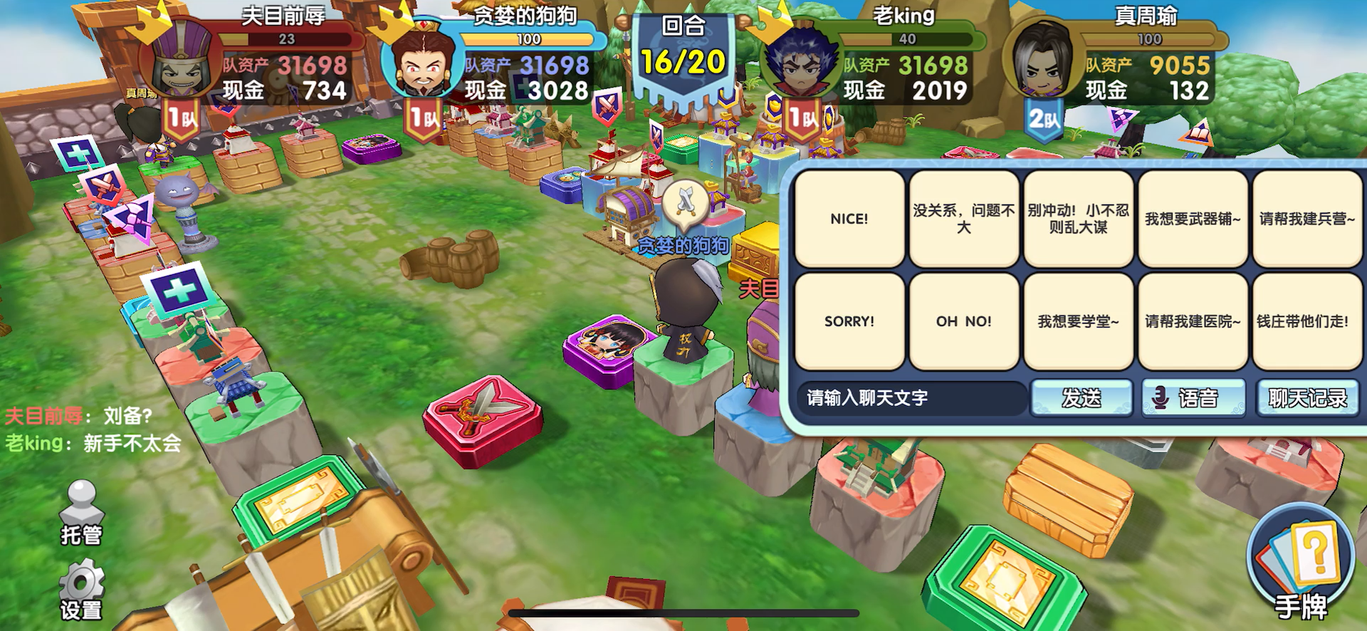 开局第一个回合运营一下,后面造兵营抢地,等资产高过敌人就差不多可以造钱庄托管等赢了。 三星的两次青龙刀 不用开局去偷 ,等许褚破产了就可以拿到了。