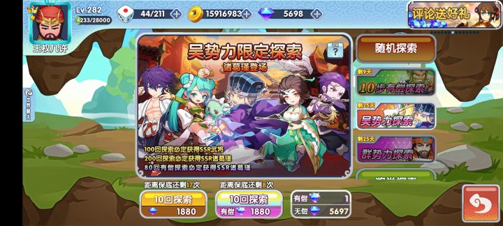本次卫国战第一关打了20w说一下。用的春华,双曹操。春华也可以换成真关羽(我没有)