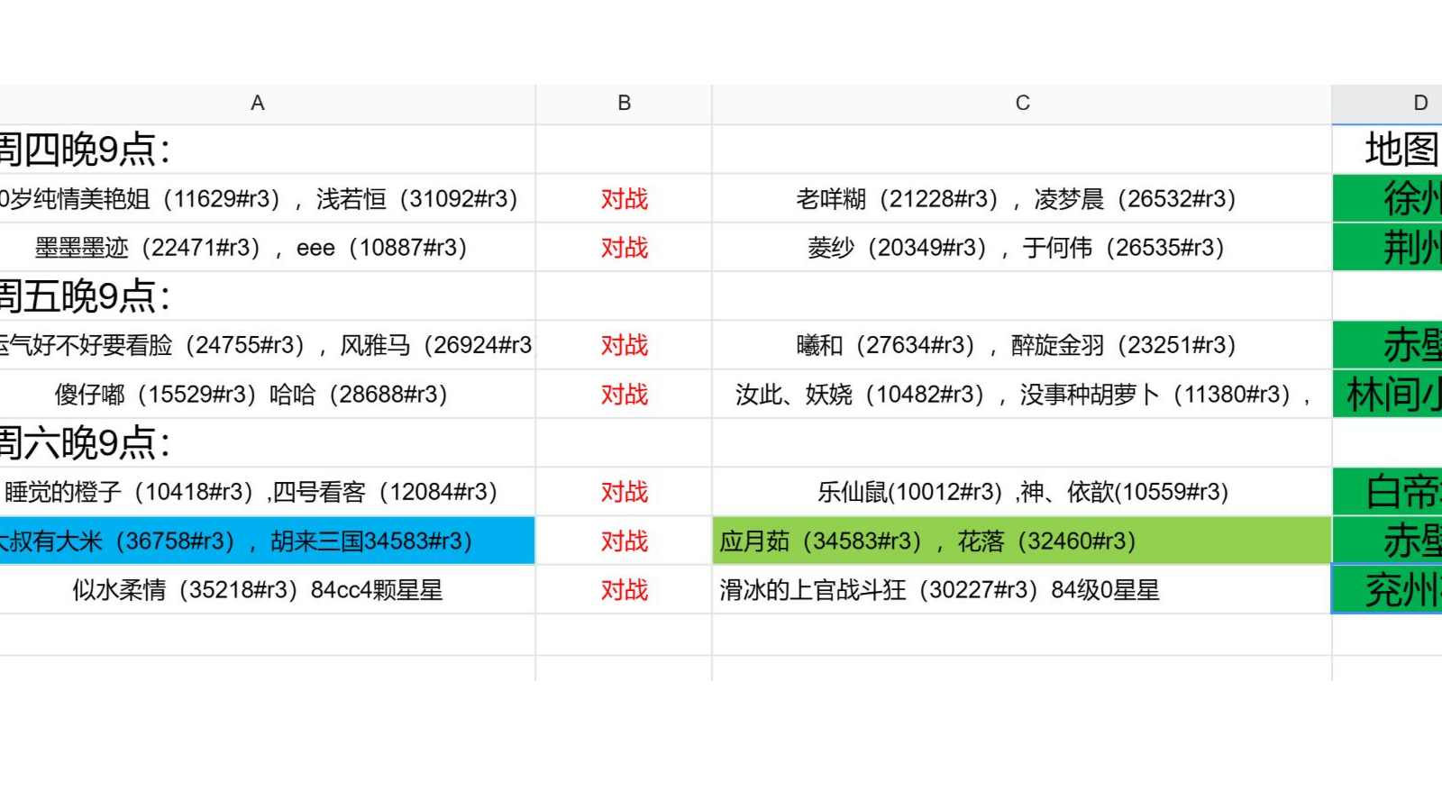 对战双方:大叔有大米85cc2颗星,胡来三国80cc9颗星星;VS 应月茹82cc4颗星星,花落79cc2颗星星 冠军:大叔有大米,胡来三国 对抗地图:益州,15回合制(萌新嘛) 汝南的萌新是真滴新,一种令人感受到这游戏的青春又回来了,萌新的活力就是这么激情四射!