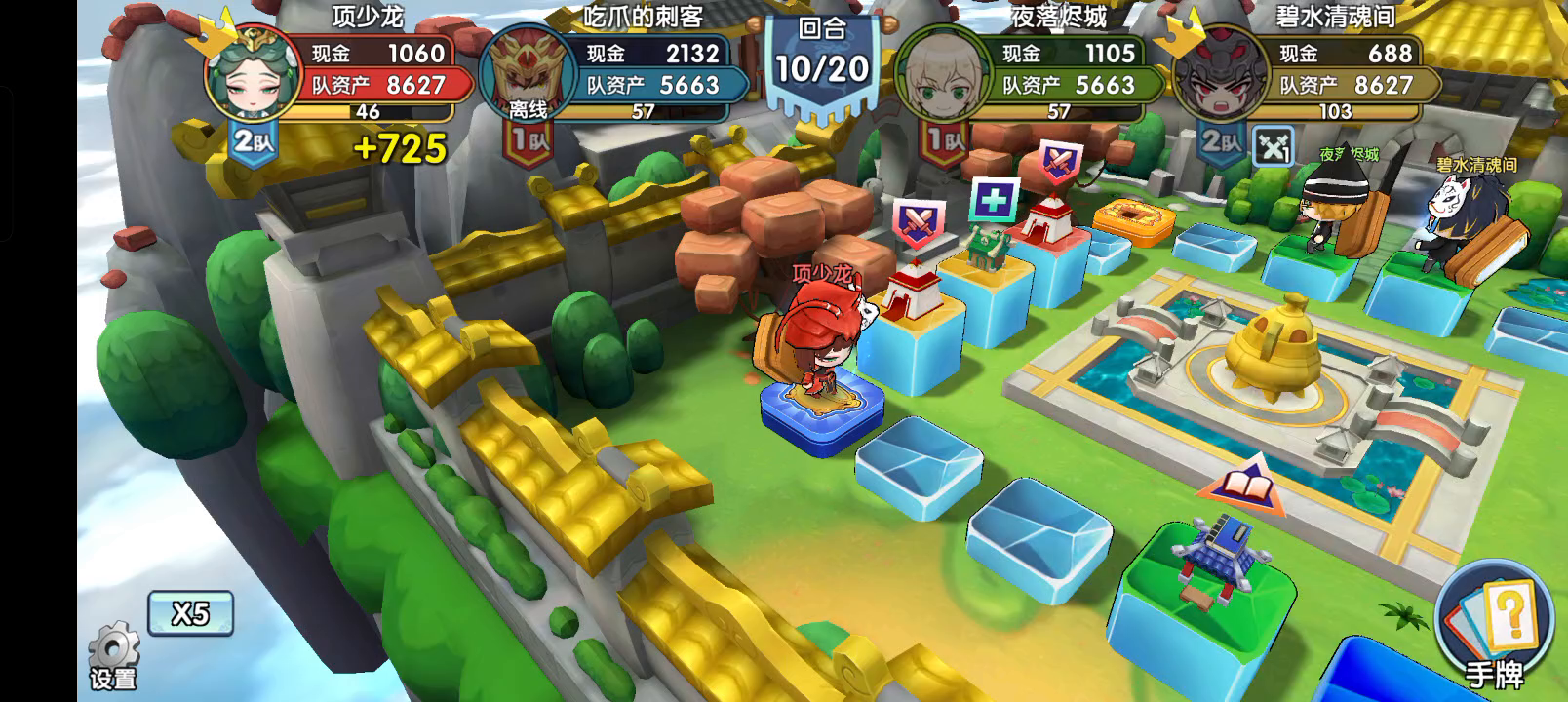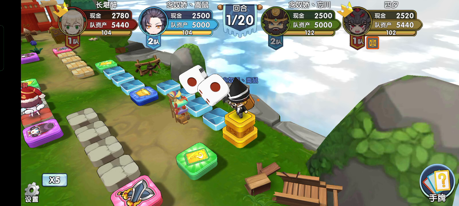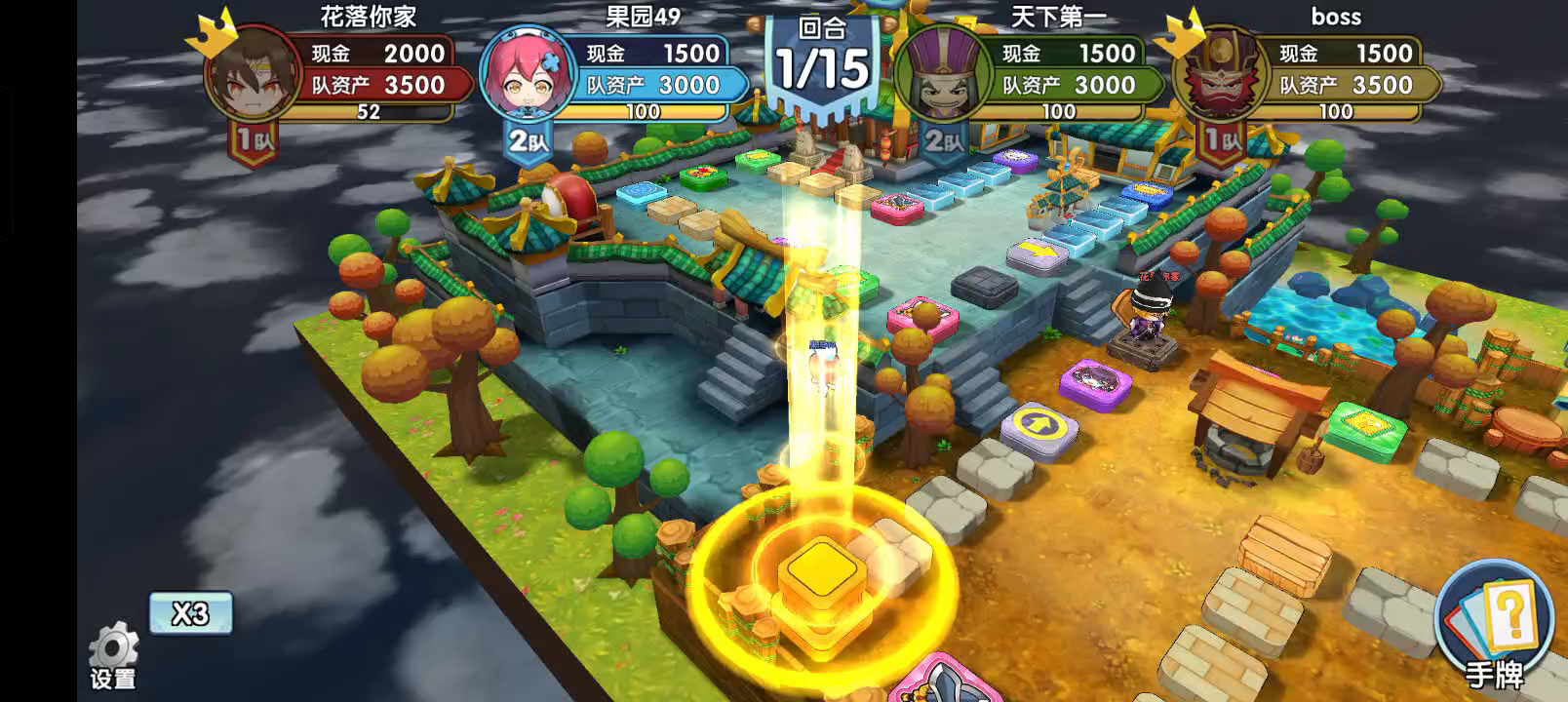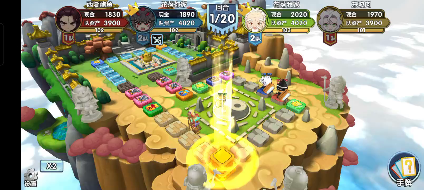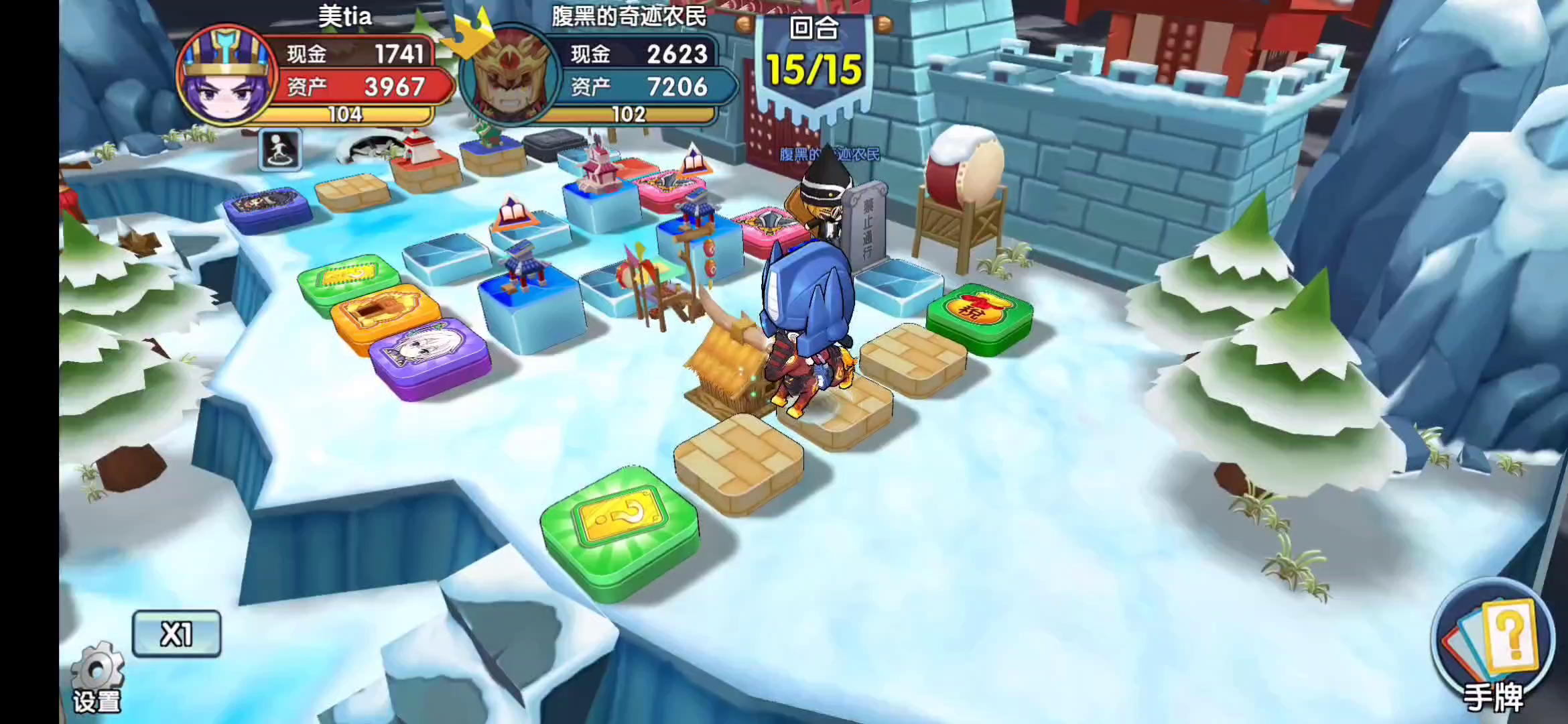 知道对手喜欢玩李儒,上次也这个地图用李儒夏侯渊,我俩马超曹操。能赢主要因为队友曹操征地征的贵的,对面还都踩了,但是赢得很困难。 这次算好他玩李儒,队友专武华佗,我专武魏延,扒光组合上阵。开局六进处没进攻,主要觉得那就一块不贵的地,没瞎用决斗。我踩了地刺,对手就着急打我那块不贵的地,拿去就拿去吧。 后来对友华佗治疗到了神木,夏侯渊没神木后就打人就吃力了。他们大概在12回合投降了。