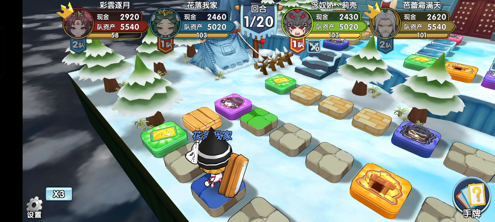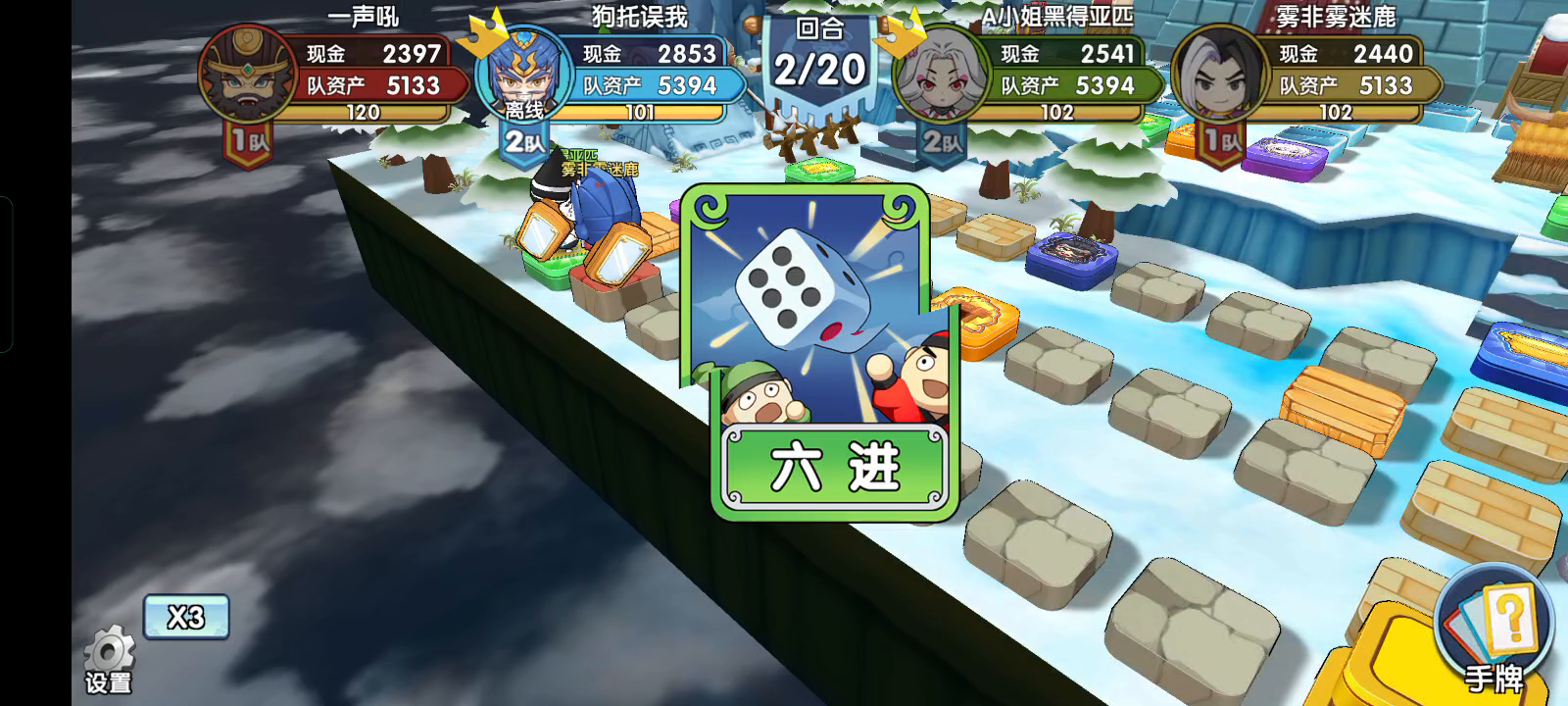 专武糜夫人这局触发率低的感人。好不容易触发了, 真左慈每次都能在我快马加鞭的时候封印。 我嚣张跋扈之后也封,拿的顺手牵羊,只能等他们用掉关键卡才能顺。 对手随便走走就独占了,我们跟着屁股踩独占。