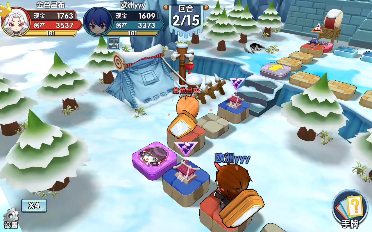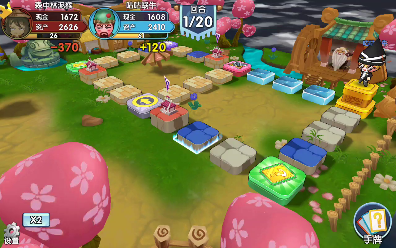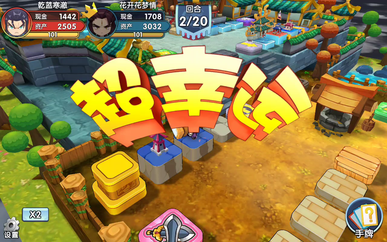 我选庞统,因为对手没上线,庞统能比较快的破产对手,随便走走就没钱了。就算真人对打也不虚,因为我满觉了。开局他打我,我巴不得呢,快点让我觉醒,他就很难打赢我。进店我买了个火烧连营,一直没用,但是对手把所有二级房子都拆了。我是想囤卡等不时之需用的,但是对手踩一脚水晶独占,我连环获益,他地就剩下一块了,还没房子。火烧无处可用了