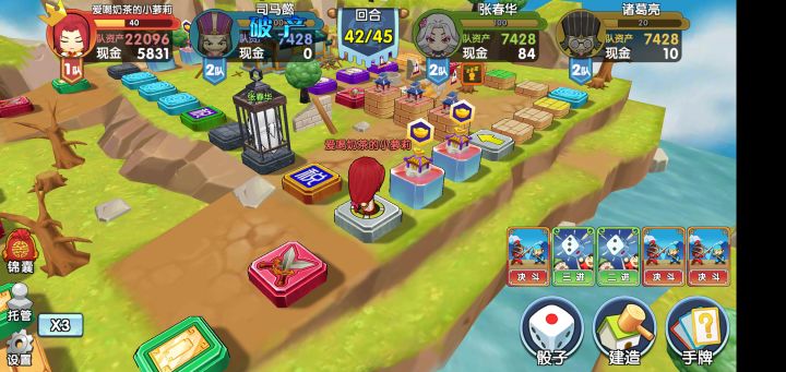这一关真的是不赢锦囊可以过的吗...我之前故事模式从来没有用过锦囊,这一关我打了一天了,最接近的一次也差了几千的经济。绝望之下,决定不计成本地使用锦囊打一次。结果我行动卡锦囊用到只剩四五个(我想刷路障结果愣是不出,不过好歹有进卡可以控制走位,有转向让大家回不了起点拿低保,小圈养猪还是有机会的),三十几回合经济还落后一万,回合延长到45回合才把司马懿搞破产而且,我不得不吐槽,电脑进天命格格大幸运了