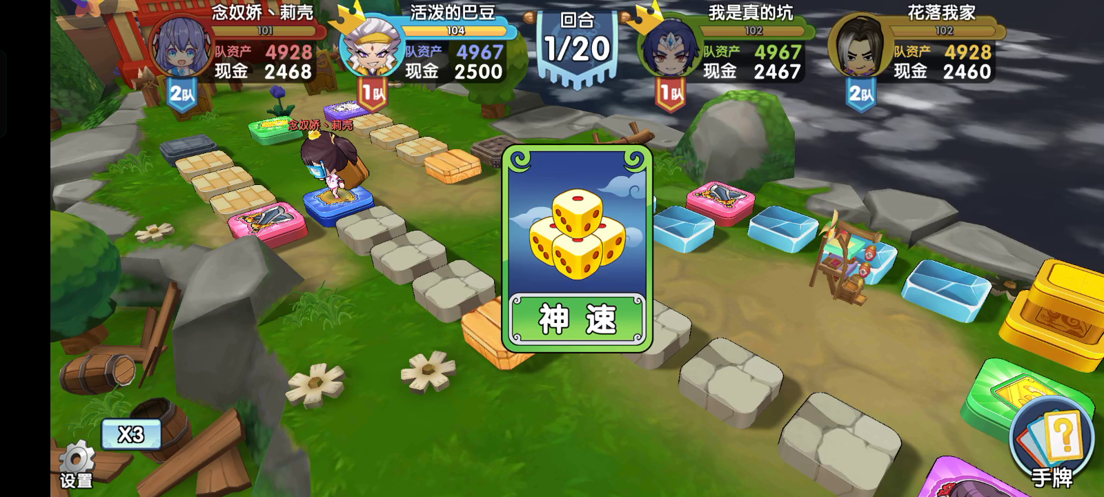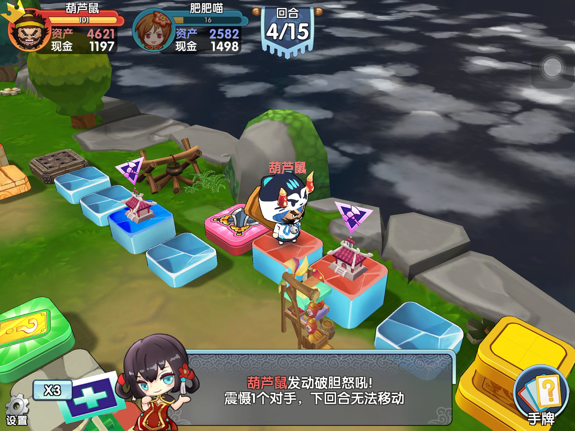 第12回合,对手破产了,我的马超没有机会在12回合行动。 十一回合两个技能加起来触发八九次,拿牌又决斗厉害极了。有一次冲锋是到元宝格子。就没冲过去。 其中有两个回合出的进卡三进,五进。占地,一个连锁地一个独占。还有一个回合出的神速。 两次出决斗都是对手残血,一个丈八,一刀死。