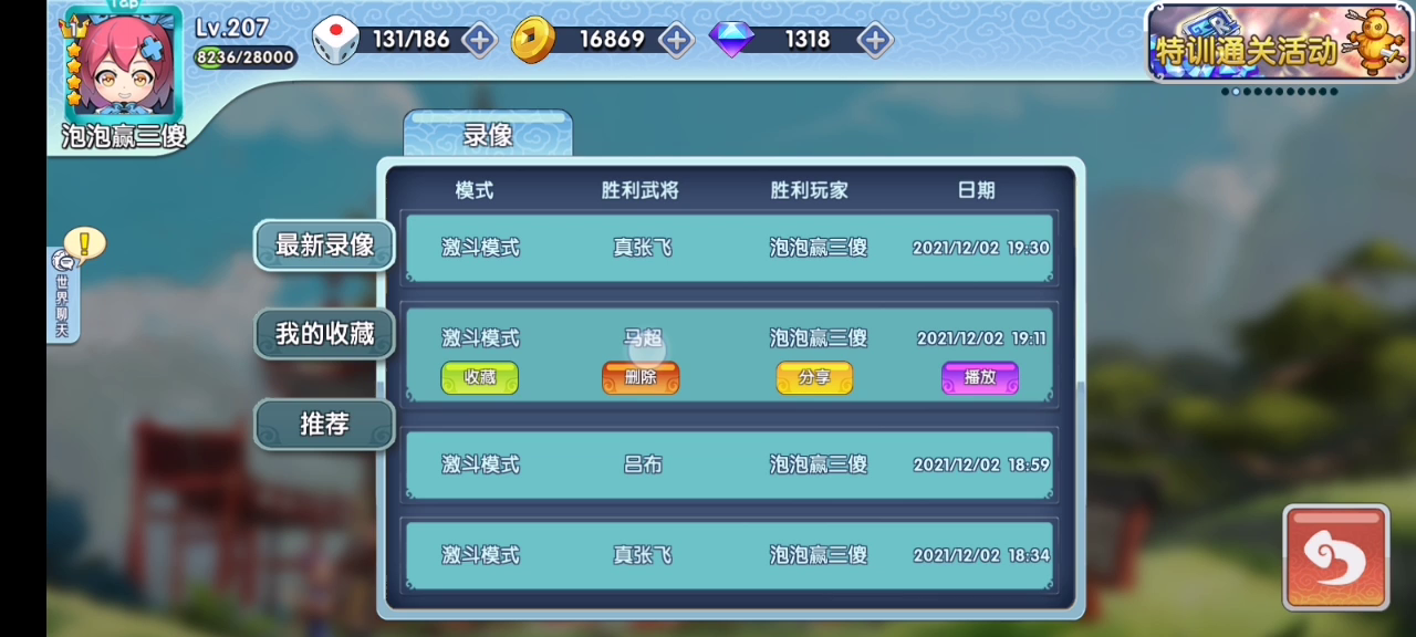 好久前的武道组队录像了,我和对面都带一个人机队友,那时候我还是个萌新,所以操作还是很菜的。 看点是第14回合,我队友小周瑜被对面孙策活活打破产,那时候我都想投降了,但是后面给了个路障我, 最后3回合,对面黄忠也给面子,踩了我最贵的地,还吃了我路障,所以我才能翻盘。 😂😂