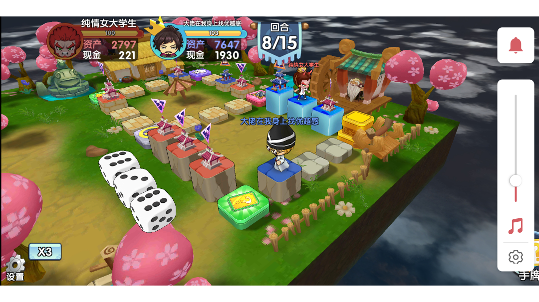 艰难打下了这一局武道。全局都是逆风,最多的分差8300左右,最惨的就是被打剩4块地,那么问题来了,这局是怎么翻盘的呢?我猜你们看出来了,是黄盖的现金!!这就是黄盖的奇妙之处,基本不用担心踩对面独占,诈降yyds。翻盘点,五谷丰登和最后投了3点。下面说说黄盖个人看法