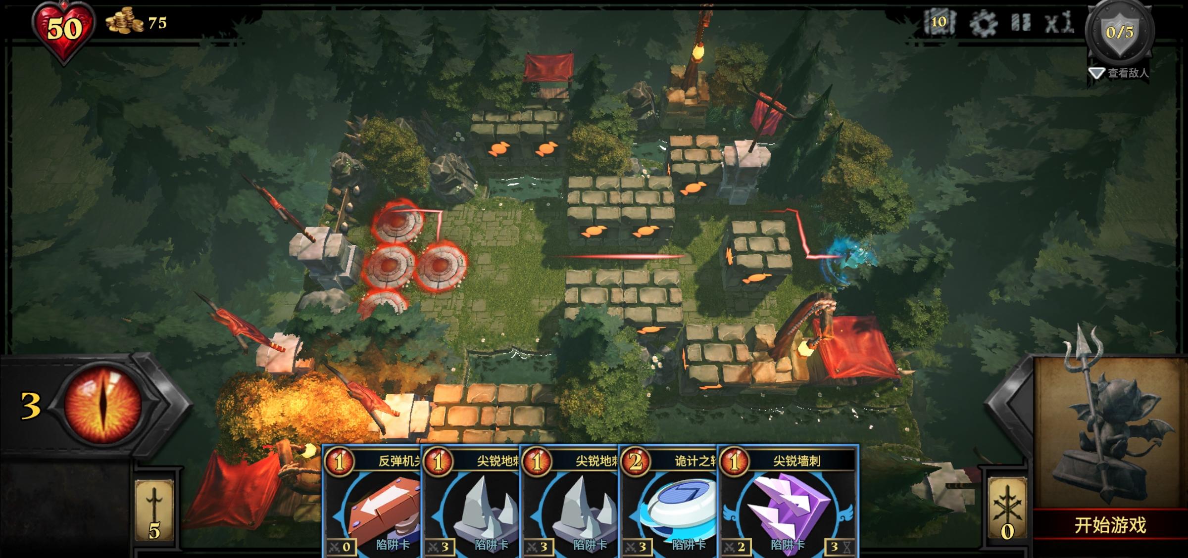 但我认为,虽然游戏的机制和操作围绕卡牌,可这游戏的核心思路还是塔防,巧妇难为无米之炊,卡牌是可以叠瞬发伤害或者叠后期伤害的,但这款《陷阱大师》游戏并不是。