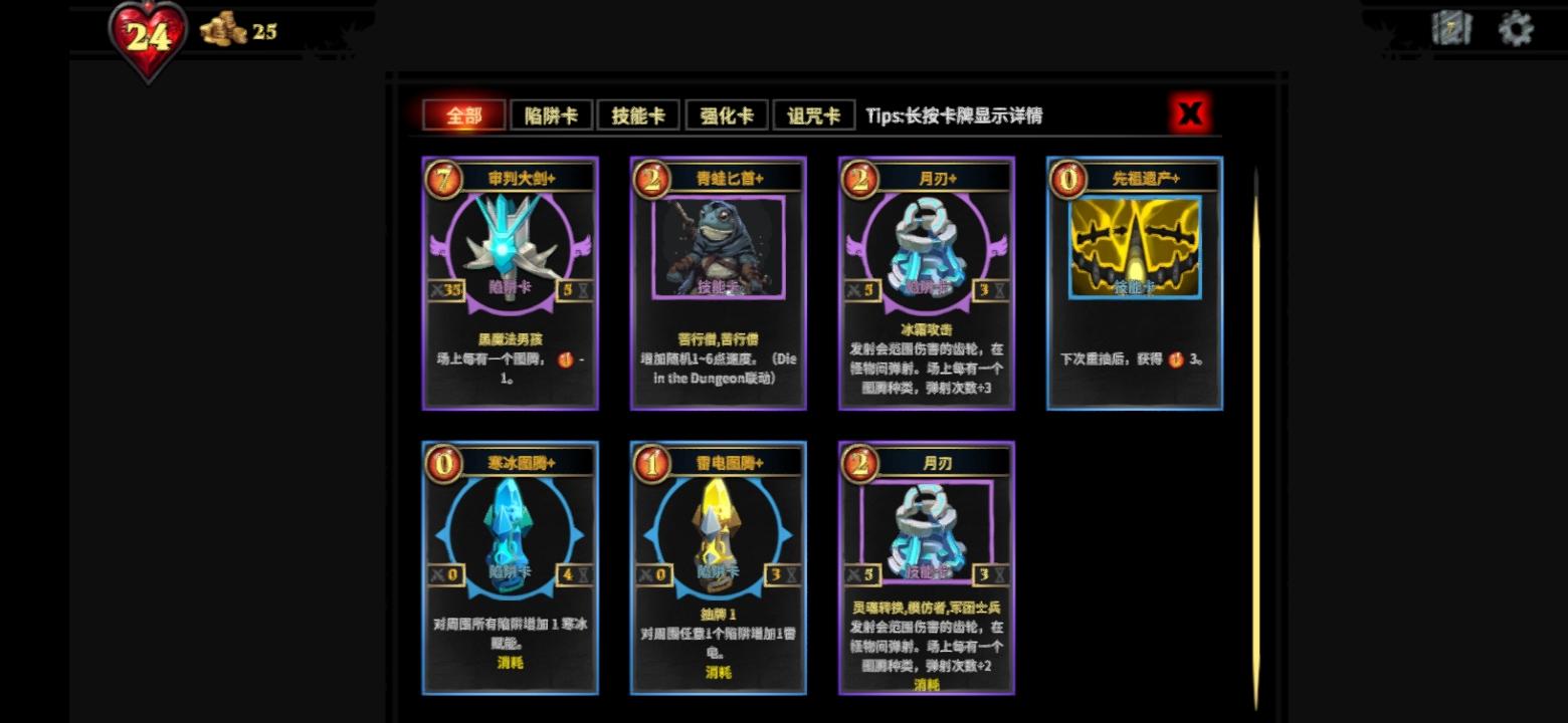 萌新不需要研究怎么开局,进去故事章节直接开始,目前3章无脑通关。基础攻略就是选择低费用的卡,目前就4种好用,挡板、墙刺、墙壁齿轮⚙️、地面⚙️,其他随缘用,有费就用。开局不用怕漏怪,有血量的,主要是选择一些必经之路埋伏陷阱,伤害不够可以用档板把怪物弹去水里有奇效。其它的就是边玩边属性陷阱功能作用。