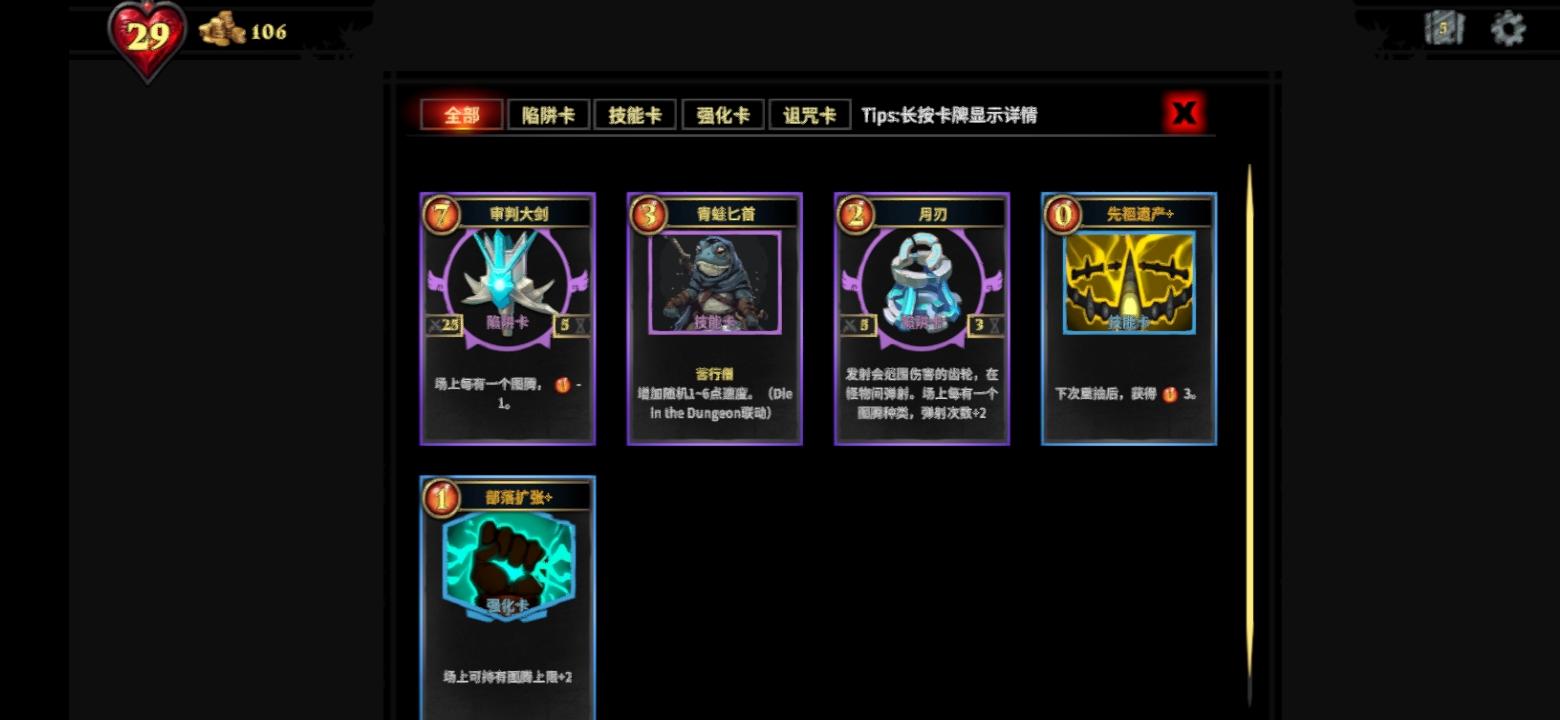 如图,本来昨天晚上打的关,一觉醒来想要继续打发现我整个卡组都被扬了,重新进入无果(可惜了我特意停在镜子事件前等着复制核心,卡组都没了咋复制啊),万幸的是金币还有不少以及两个连续商店事件的关系,还能组一个极简卡组,利用遗物重抽获取能量和遗产卡获取能量,前期输出月刃尽量拦住小怪,然后苦行僧青蛙在CD和速度上双双加快我方回转,待到能量充足掏出咖喱棒…啊是审判大剑,最后在BOSS关达成了图四的0CD,成功