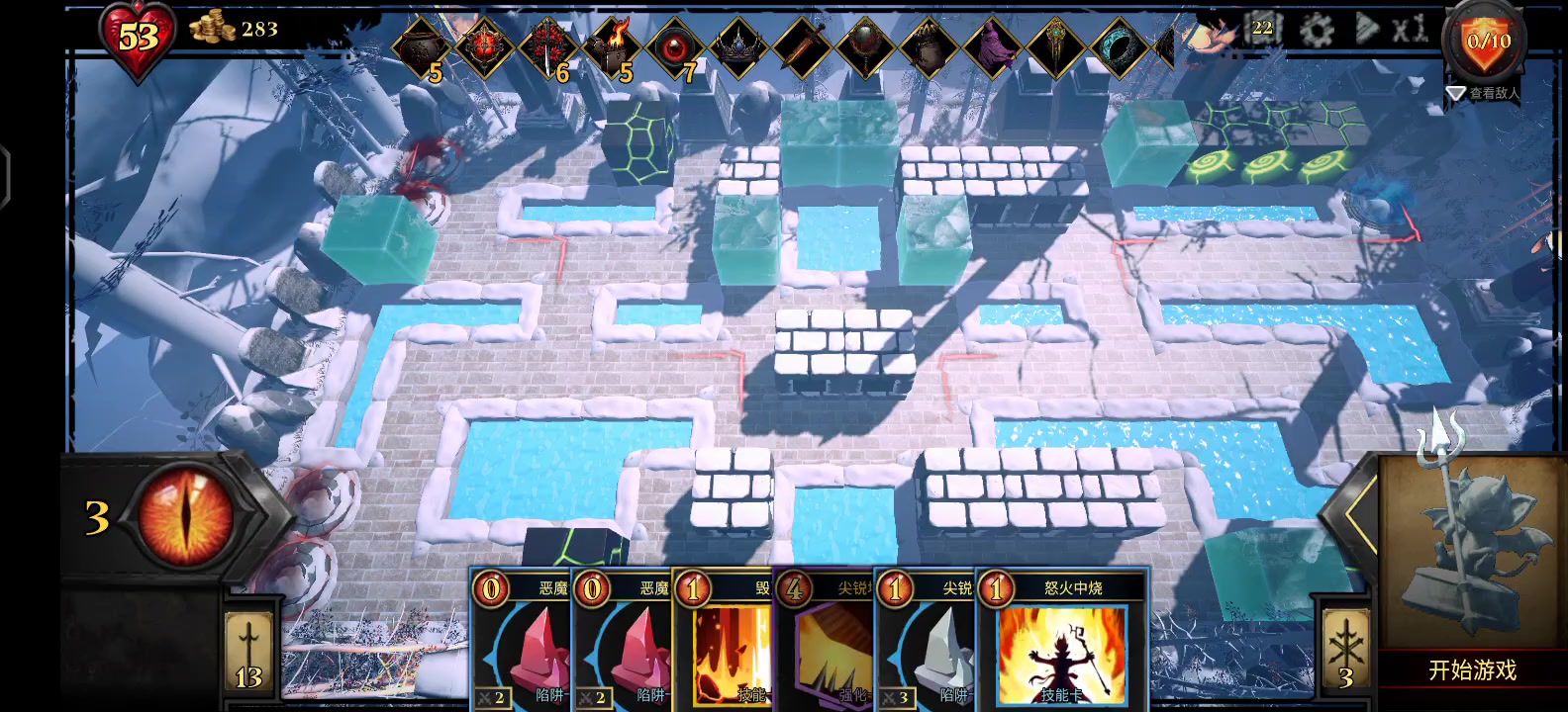 #陷阱大师 #陷阱大师攻略 #发陷阱大师攻略赢JD卡 总结:开局等🔥,差不多了把双倍🔥用掉,然后放置便宜的尖刺陷阱,摆放完毕后使用毁灭将刚刚摆放过的陷阱拆除换双倍攻击(因为地图较小,弩箭没有发挥最大的实力,所以将弩箭数量换为攻击力更划算。),而后刷出弩箭就可以随便放尖刺陷阱然后挂机了。