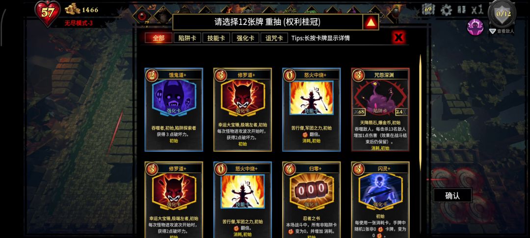 核心是灭星仪式强化一下,然后古代机械手无限过牌,重抽给我们一堆牌,让灭星仪式发动弃牌叠加重力,只需要在怪物出生点放一个黑洞,和自己的终点放一个可以叠黑洞了。核心强化词条是给古代机械手拿一个就是初始牌的词条,然后再去镜像复制一张,这样我们开局重抽到手多四张牌,然后再发的灭星仪式,核心在于精简牌组,无用的牌全部商店弃掉,优先重抽卡以及过度卡和回蓝卡来支撑我们手牌跟手性,理论上黑洞可以一直叠到屏幕外,这