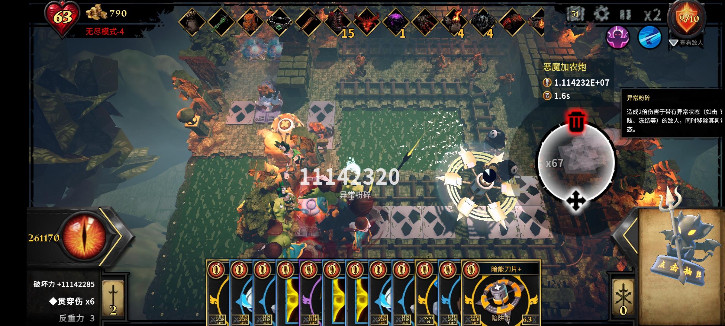 建议官方加大一下无尽模式的难度,基本上在打到了无尽模式-2左右,卡组就成型了,对于后面就是虐菜了,越打越无聊,开局就能铺设一堆陷阱,咒怨深渊叠加够高,开局堵门,各种BUFF一加,除了BOSS和飞行怪都出不来,后面随便一种对空陷阱,就是等时间了。