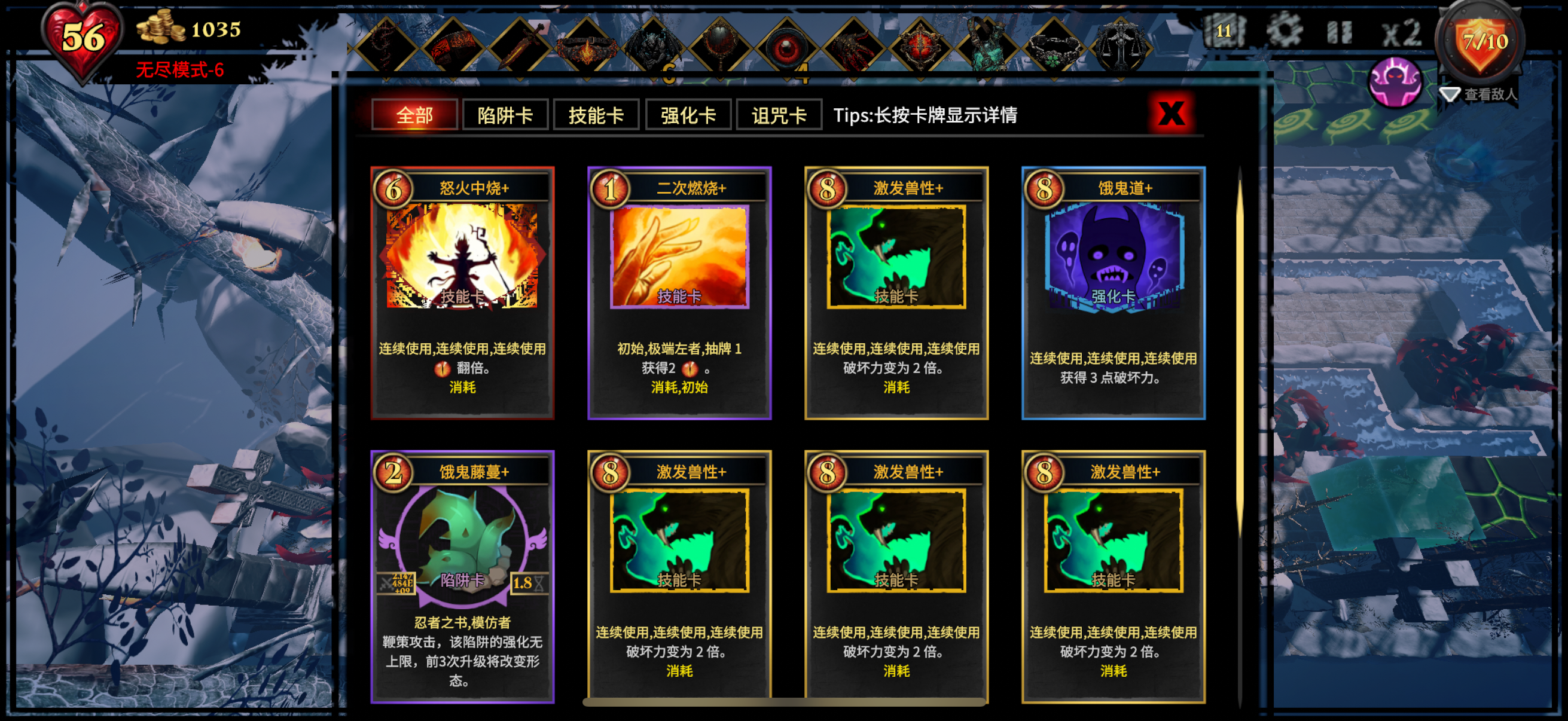 建议官方加大一下无尽模式的难度,基本上在打到了无尽模式-2左右,卡组就成型了,对于后面就是虐菜了,越打越无聊,开局就能铺设一堆陷阱,咒怨深渊叠加够高,开局堵门,各种BUFF一加,除了BOSS和飞行怪都出不来,后面随便一种对空陷阱,就是等时间了。