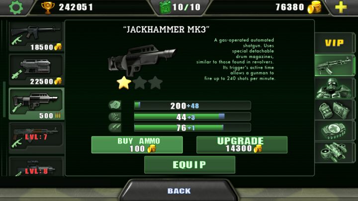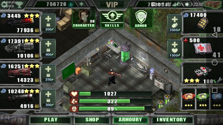 游戏设计不错,游戏地点从内部到外部,我买了最后一把枪,600000金币的步枪,加上2个绿色攻击辅助,打僵尸效果不错。