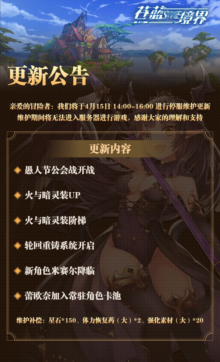 各位亲爱的冒险者:非常感谢大家对《苍蓝境界》的支持与关注!如今,等待已然结束,通向异世界的大门再度敞开,我们将于2017年11月14日15:00正式开启《苍蓝境界》新颜公测预下载!同时爱琳大陆出现了能量旋涡。史上最萌的智…………能虚拟主播“A.Ichanner”绊爱穿越时空来到了爱琳大陆!绊爱带来了多重开服好礼,各位小伙伴还在等什么?爱琳大陆欢迎大家入住!安卓客户端将先行开放预下载,iOS客