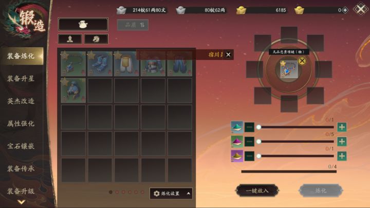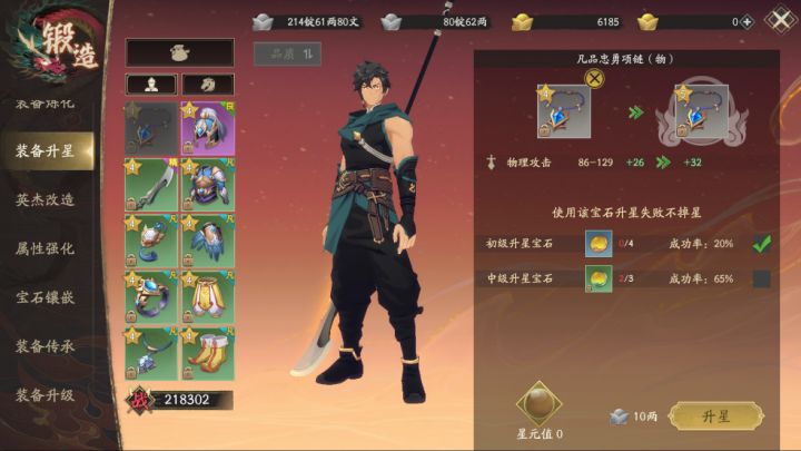【装备升级】1.角色达到71级,开放装备升级功能。2.大于等于61级的装备可进行装备升级。3.装备升级成功后将完美继承原装备已有锻造属性。4.升级装备需要消耗足量陨铁,陨铁可通过封印宝库进行购买。5.封印宝库于70级破封时首次开启数日,随后各等级段封印破除后都将再次开启封印宝库。【装备升星】1.角色达到35级,开放装备升星功能。2.消耗升星宝石对装备进行升星,能增强装备属性。3.