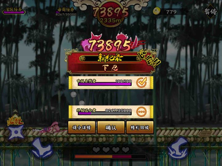 虽然这游戏主角是忍者,初始角色还带着一个太刀砍砍砍(这真的不是武士?)。但这是跑酷游戏,这是跑酷游戏,这是跑酷游戏!重要的事说三遍,虽然砍死飞镖,人偶等障碍物有积分,但贪刀迟早药丸,因为空挥扣血,而且障碍物会逼你走位到最容易收集硬币的地方,钱很重要!好了,接下来慢慢更新,手机截图不太方便,所以见谅。(动作按键可通过设置调整为你习惯的方式。)