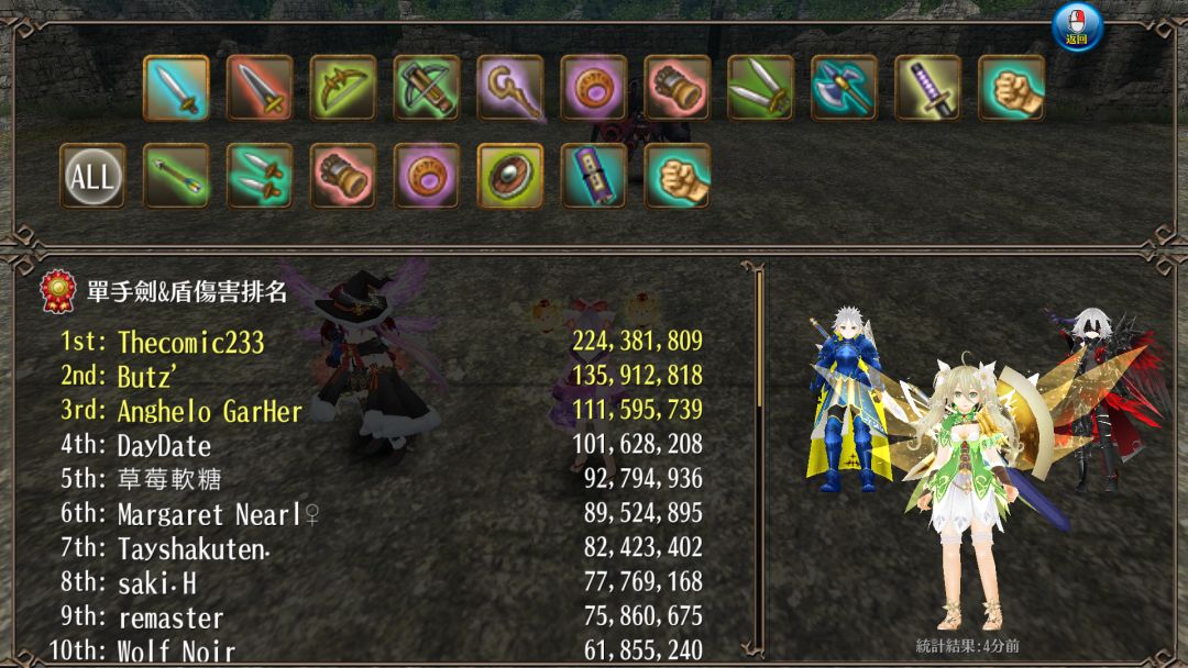 常规毕业近伤命中配置 如果你不习惯使用特性,或不喜欢那么一点的偶然擦伤的可能 那么这里还有一套常规的传统命中装备 主旨就是伤害能稳定把怪秒掉就够,不追求最高的数字,玩着比较舒心 满级开勇气后命中在904,达到了几乎所有野王/高难/非ulti活动BOSS的命中线 也有缺点,就是暗影角饰的追二价格 武器:10周年宝剑+S(推荐攻击670以上) 属性附魔:X属性 对Y属性伤害23% ATK15% CD2