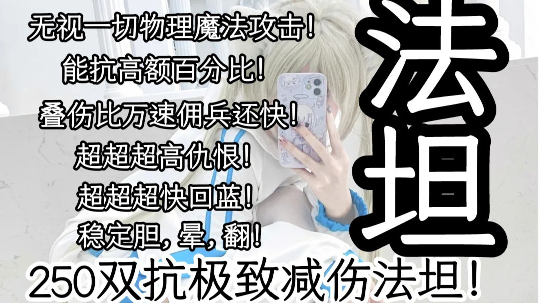 初音活动的武器太逆天了 你看看这数值 30%双抗,15%异抗,还有1000咏唱!还是必定双孔!但是注意了,千万不要精炼,不精炼只有300点atk,这样飞盾反伤没那么疼 搭配一下周年盾:13双抗,52仇恨 再加上幼女衣:25双抗 还有便宜好用的过气追加秩序:20双抗 这时候发现暴击不够怎么办?别急,便宜好用的树桩简直就是量身定做 加上一点点好用的料理 在吃上一点点好用的药品:银杏,属抗 现在来算算我