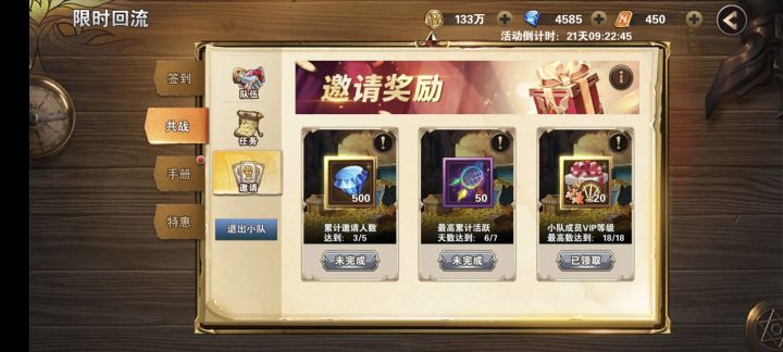 36285回流玩家来我队伍拿v18奖励,拿完退队
