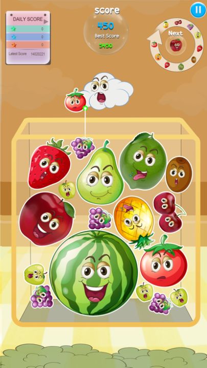 欢迎来到西瓜游戏,这是一款有趣且具有挑战性的手机游戏,挑战玩家匹配相同的水果,以防止它们从盒子里掉出来。 玩家可以将两个小水果合并成一个更大的水果,目标是创造一个西瓜。 游戏具有动态的水果匹配、策略性的游戏玩法以及令人兴奋的变形。