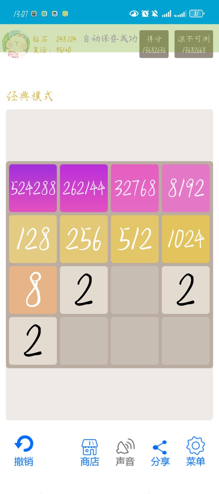 顺带问一下,我65536合成了131072,难道不是达成了理论的最大值吗?还可以继续合成?