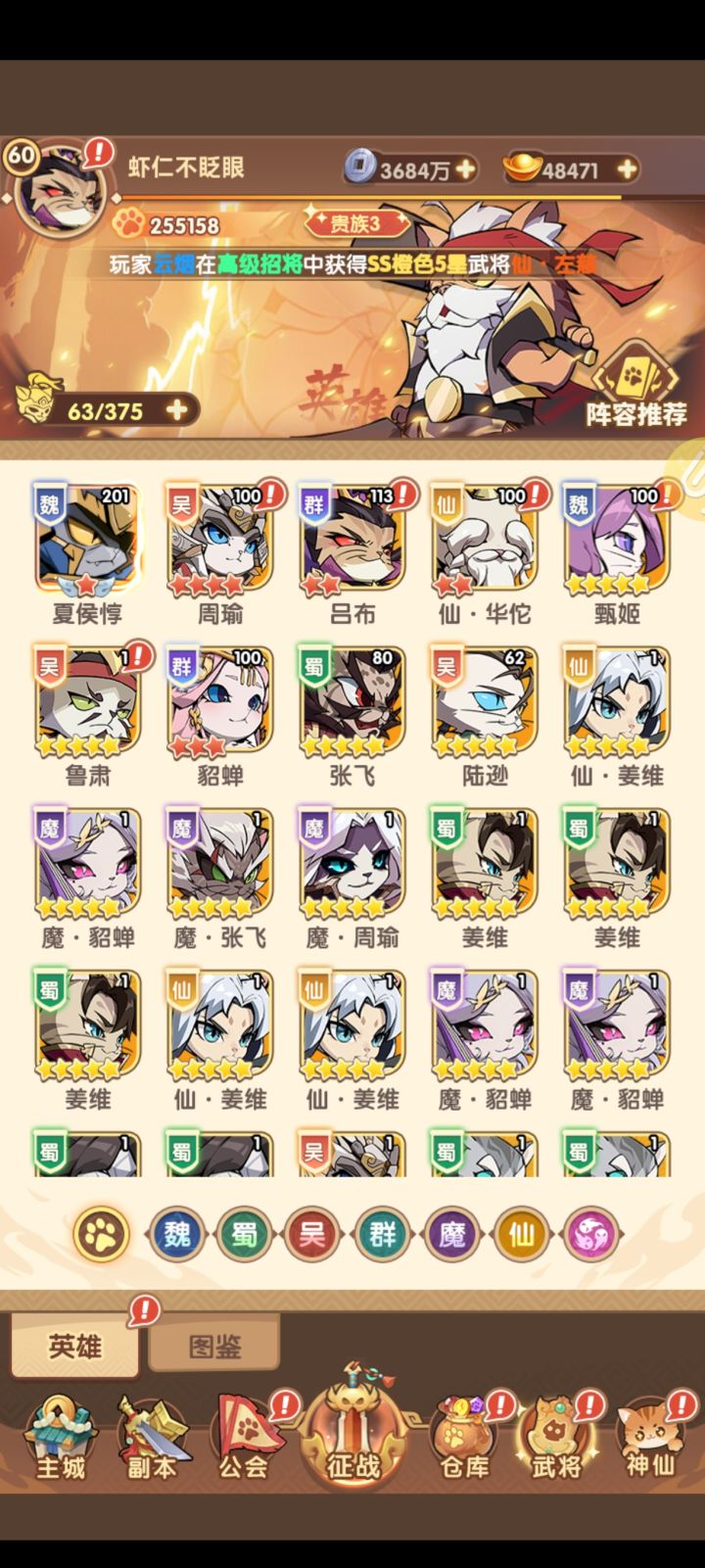 官方嗷呜 : 啊,主公,亲爱的主公,我该如何表达自己激动的心情,你对猫三国研究得如此透彻,已经超越了90%的玩家;你又能用文字简洁表达出这个游戏的特点,已经超越了99.9%的玩家;而且你还喜欢我们的游戏,我们能得到你丰满表达的认同。我对你的仰慕如滔滔江水连绵不绝,犹如黄河泛滥一发不可收拾。