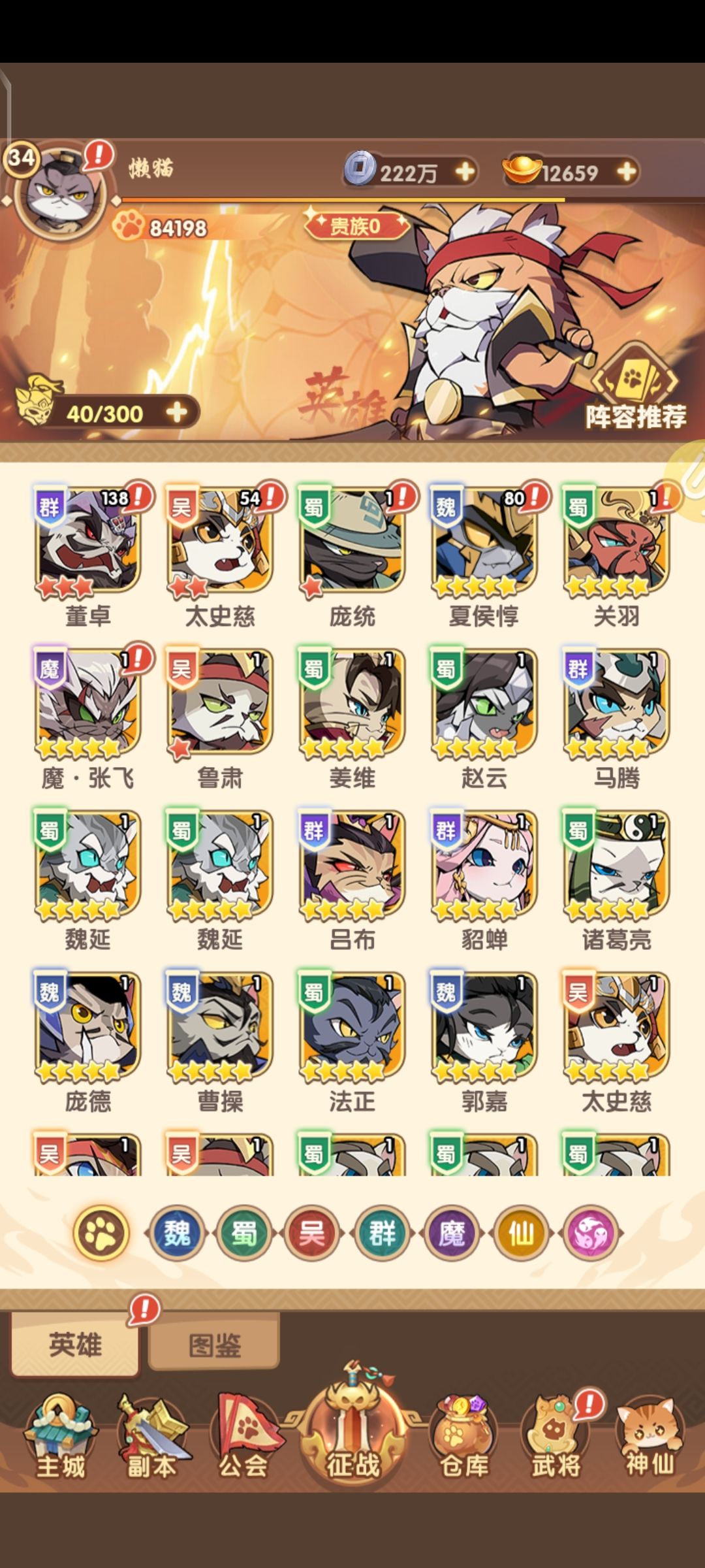 #猫三国新手养成攻略手册 #猫三国 之前一直在tap上找卡牌游戏,看了一大圈,感觉这个还靠谱下来试了试。 先弄了2个号看看了怎么玩的,然后在196定居了 1.应该是10点开新区 2.前期征战等级没有排行榜福利[表情_泪目],我以为跟其它游戏一样有福利充了个扫荡特权[表情_喷] 3.游戏资源挺多的,0氪也可以玩,前期抢榜啥的不用想了,苟住,等你们区稳定住了。根据活动冲榜。积累资源很重要。 4.养吕