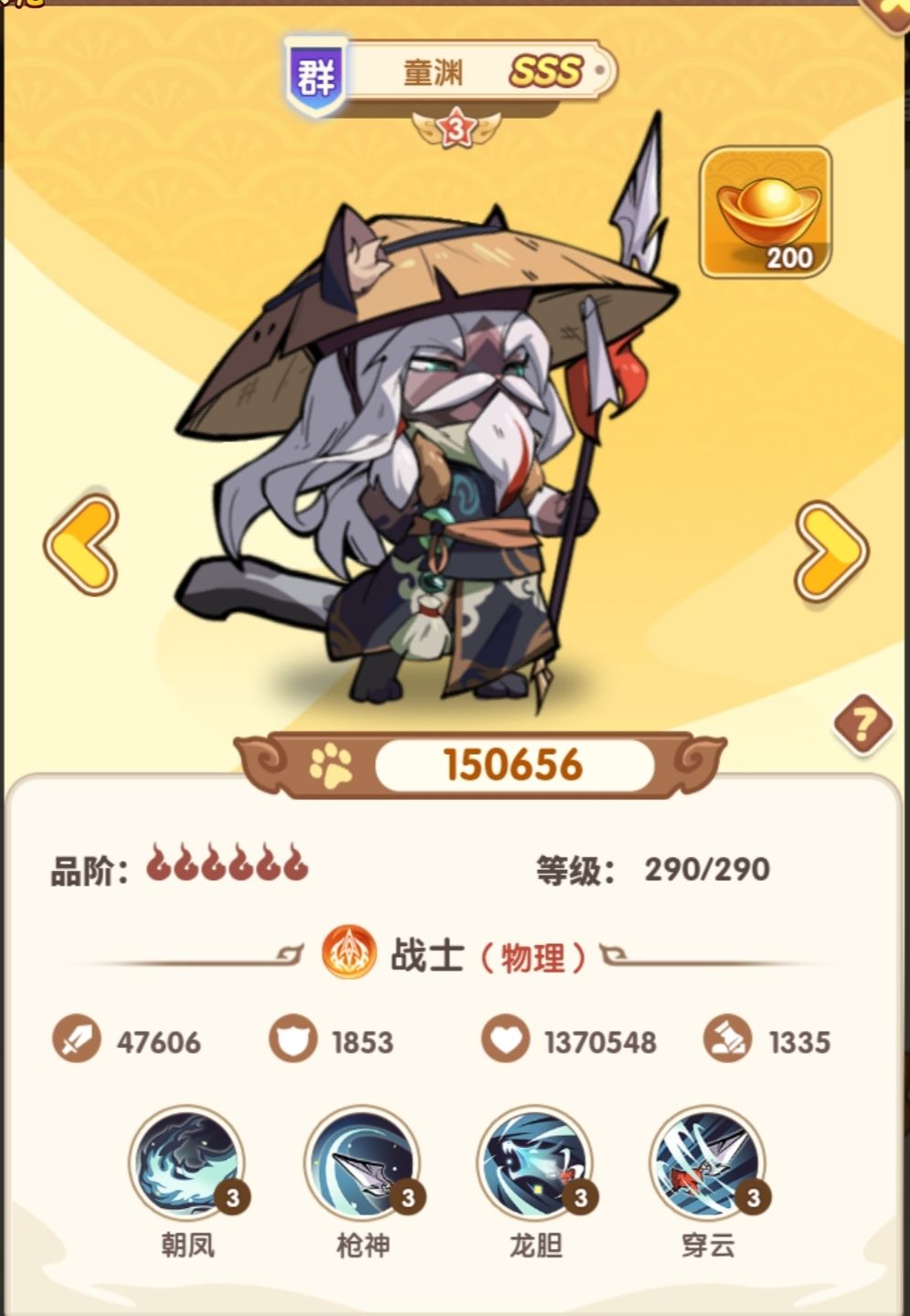 单体比不上仙马超,打低战力技能伤害不饱和,打高战力能不能站住是个问题,属性没减伤,可以说纯鸡肋角色,不需要考虑。#浅评一下