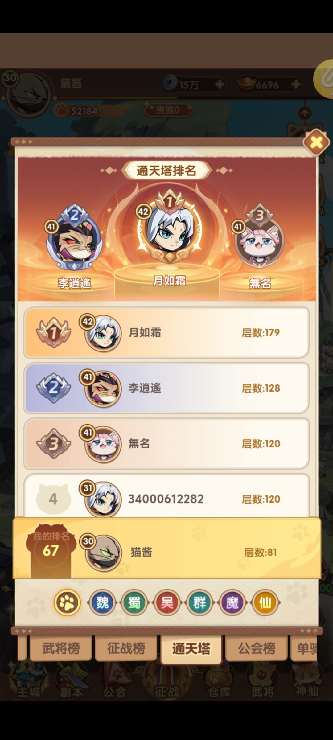 基本上推荐阵容说得够明白,个人推荐吕布首选,无脑拉满,魏国夏侯惇,蜀国赵云,吴国培养九星材料吧,群雄自然是吕布,董卓看着也不错。仙家能拿到的姜维(实在太拉,不清楚为啥吹那么厉害完全没伤害)目前就养了仙姜维,魔将就养了貂蝉,还行吧,起码没有让材料卡闲着。当然,元宝别急着用,有限时神将要用,大概三万元宝,今天刚刚出的云阶关羽,强无敌。后面还有魔刃曹操,至于星诸葛就不清楚会不会是限时神将了,强度太离谱看