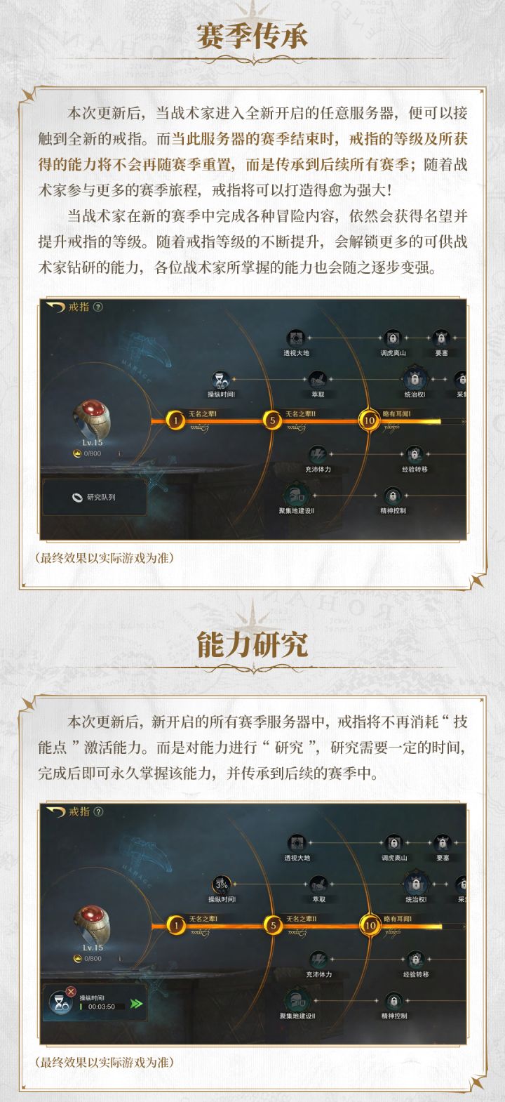 本周维护将于2025年6月11日 10:00-11:00进行,维护结束后,以下更新内容将会生效功能调整戒指功能调整- 戒指作为核心的体验内容之一,已经伴随各位战术家度过了一个个精彩的中洲征程。我们期望各位战术家在戒指的投入可以得到更多的延续,更好地为战术家们提供强大的助力。因此,我们将对戒指的核心机制进行调整,具体的调整内容如下:· 本次更新后,当战术家进入新开启的任意赛季的服务器,便可